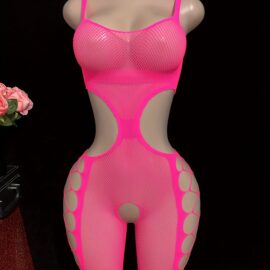 1pc Plus Size Women’s Sexy Strappy Bodysuit with Open Crotch and Ankle Pants