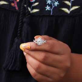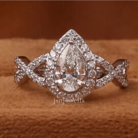 1ct Pear Lab Grown Halo Engagement Ring | , 14K Golden Plated, Elegant and Easy Style, Ideal for Wedding and Valentine’S Day Gifts