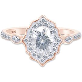 1.00 Cttw Moissanite Lab Created Flower Vintage Design Engagement Ring | 18K Golden Plated over Sterling Silver, Luxurious Style for Wedding and Banquet Occasions