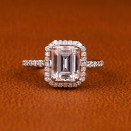 2.50 CT Emerald Cut Lab Halo Engagement Ring | , 14K Golden Plated, Elegant and Easy Style, Suitable for All Seasons and Gift-giving Occasions