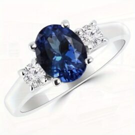 2.00 Lab-Created Oval Sapphire & Gemstone 3-Stone Wedding Ring in Golden – Elegant, 4-Prong Design, Luxury Classic Style, Valentine’S Day and Elegant Occasions, Valentine’S Day Rings | Elegant Wedding Rings | Luxury Ring Designs, Gemstone Wedding Rings