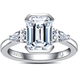 AnuClub Moissanite Engagement Rings 3.6cttw D Color VVS1 925 Sterling Silver Emerald Cut 3 Stones Pear Cut Side Stone Promise Wedding Rings for Women with Certificate Size 7.5