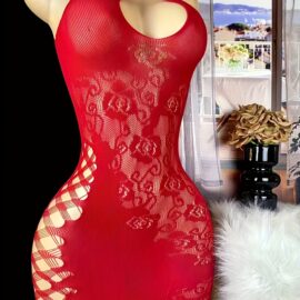 Women’s Sheer Fishnet Halter Babydoll Dress – Lingerie Chemise Mini Teddy Suitable for Performance & Themed Parties | Nightwear Outfit