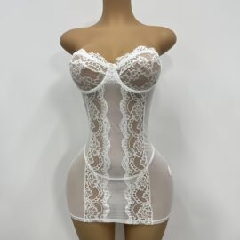 Women’S Red & White Sheer Lace Bodysuit | Boasts Intricate White Floral Lace Trim Against Vibrant Red Sheer Mesh, Accented with Cute White Bows And Adjustable Red Ribbon Straps, Perfect for Adult.