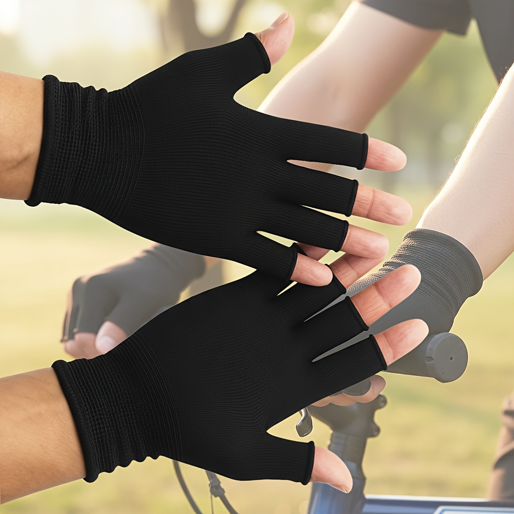 1 Pair Men’s Breathable Stretchy Fingerless Gloves – Winter Warm Cycling Gloves with Fingerless Design for better dexterity, Suitable for Commuting, Fishing, Crafts, Christmas & Carnival Gift, Sporty Solid Color (No bulk for cold weather)