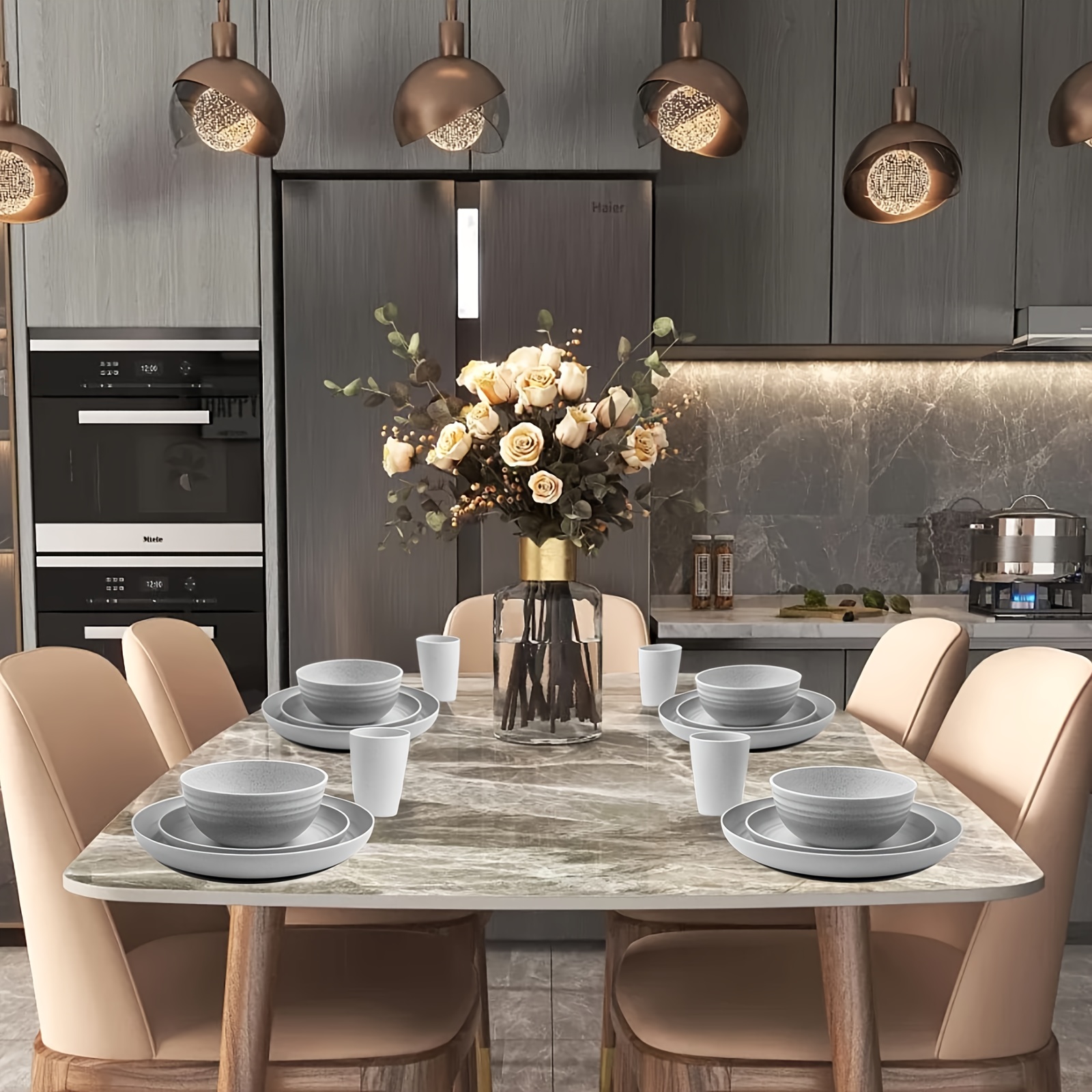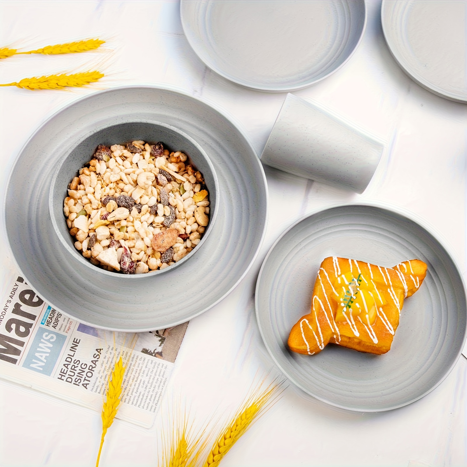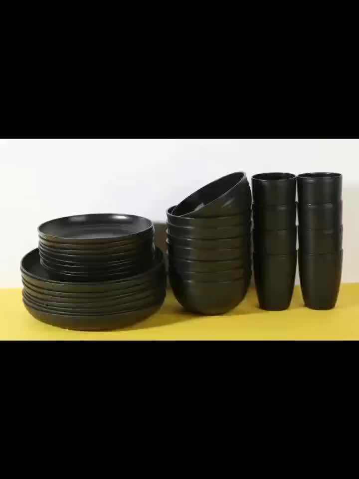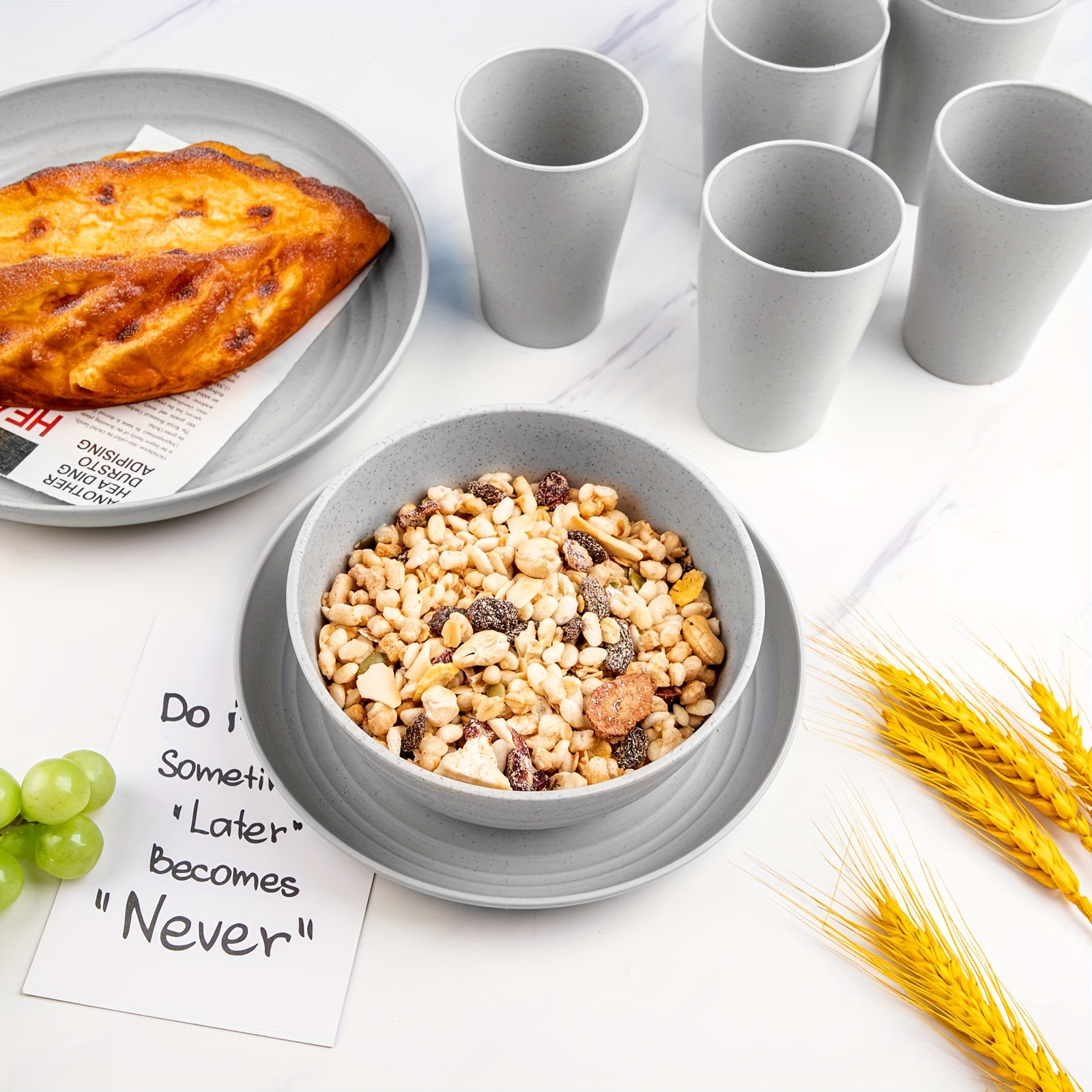 16/32pcs Kitchen Plastic Wheat Straw Tableware Set, 4/8 People, Plates, Dessert Plates, Cereal Bowls, Cups, Unbreakable, Lightweight Shatterproof for Camping/Daily Use/Parties/Weddings, Gift for Halloween/Christmas, Local Warehouse Item