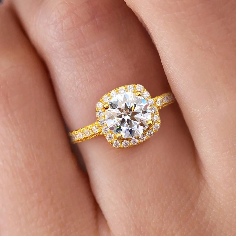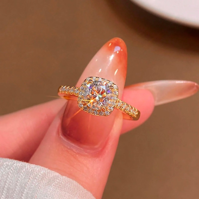 1pc 1-1.05 Carat S925 Silver Laboratory-created Engagement Ring | D Color and VS Clarity, 18K Golden Plated, Boho Style, Perfect for Any Occasion, Gift Box Included