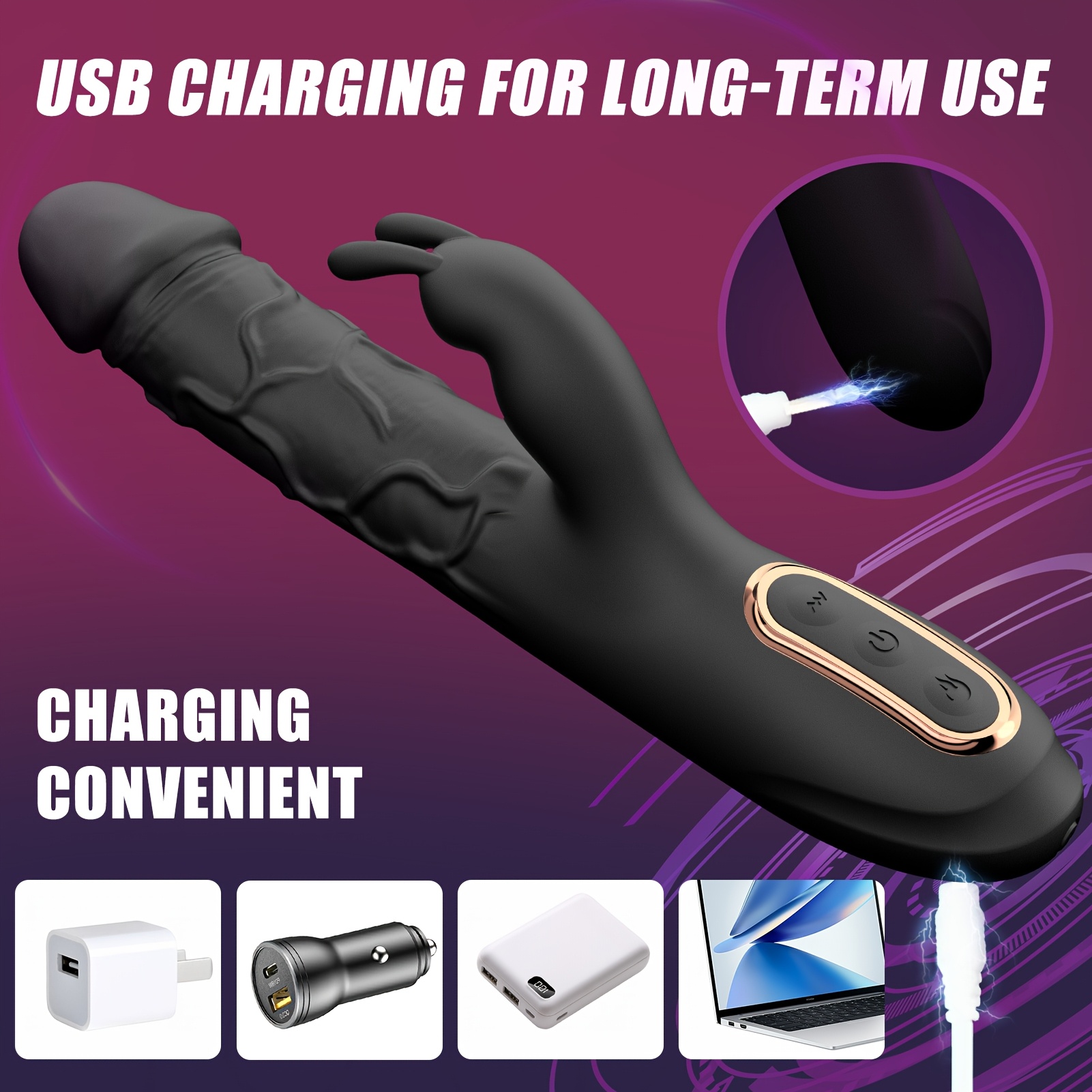 1pc Rechargeable Silicone Rabbit Vibrator, 2-in-1 G-Spot Stimulation and Clitoral Massager, 10 Vibration Modes, USB Powered, Soft and Quiet Adult Sex Toy