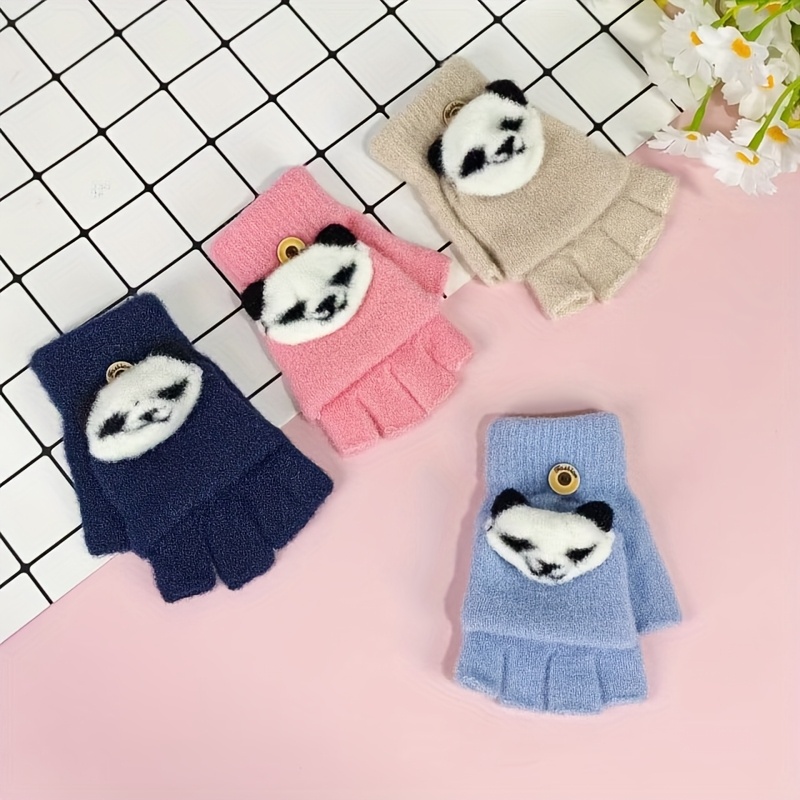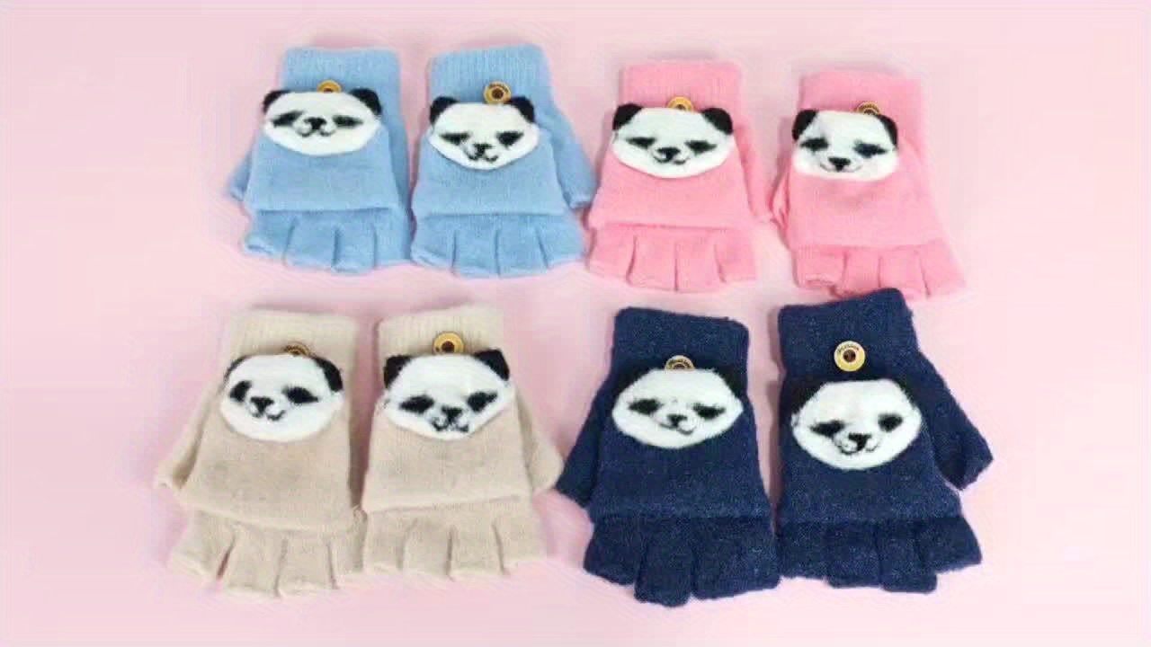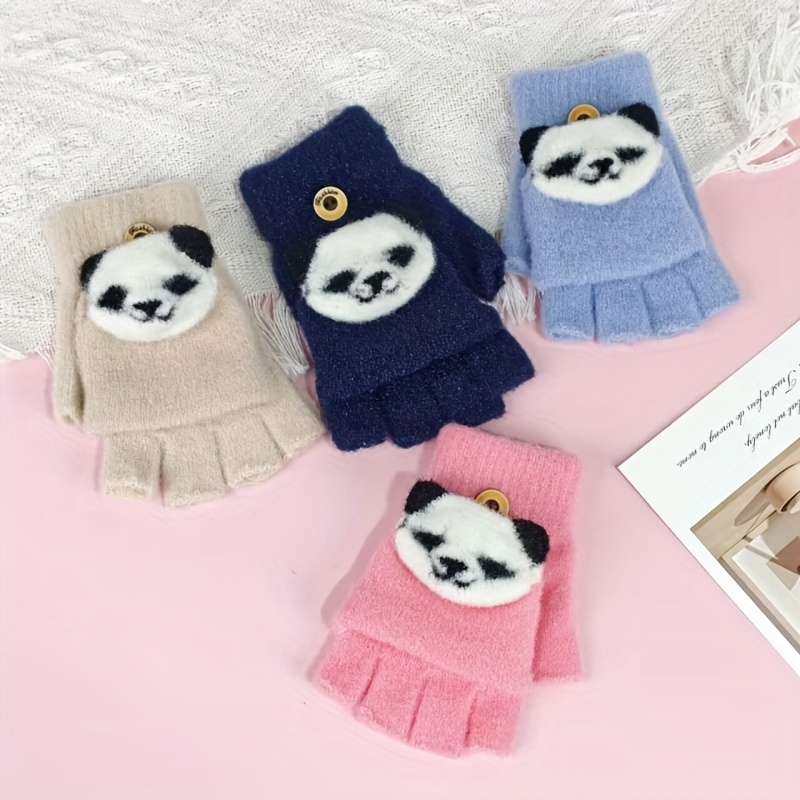 1pc Winter ted Flap Gloves – Fingerless ted Gloves – Fun Panda Design, Thick, Lightweight, Warm – Suitable for Outdoor Activities, Cold Weather, Daily Wear, Christmas, Easter, Birthday Gifts, Thanksgiving, etc. – Perfect Gift Choice