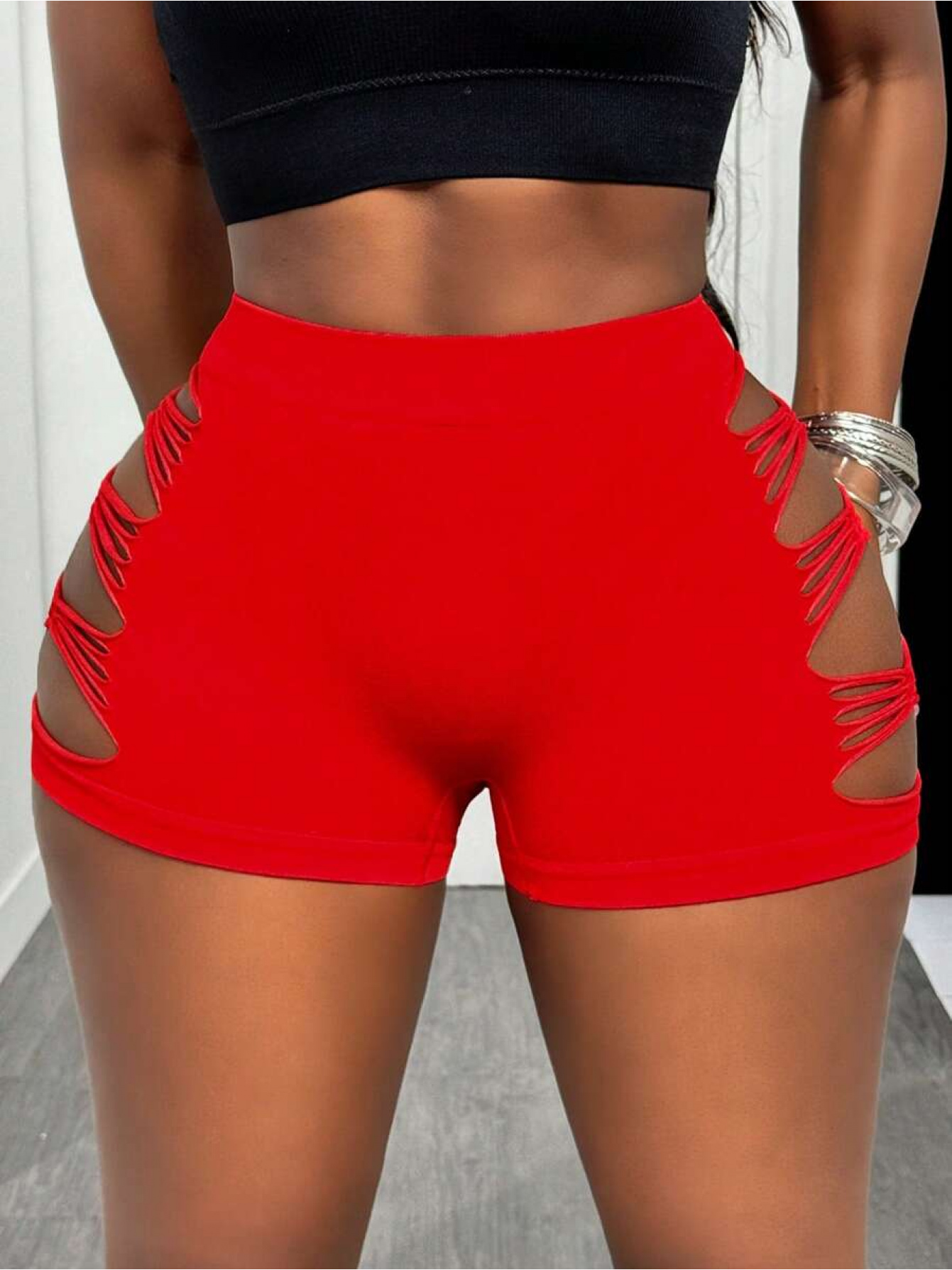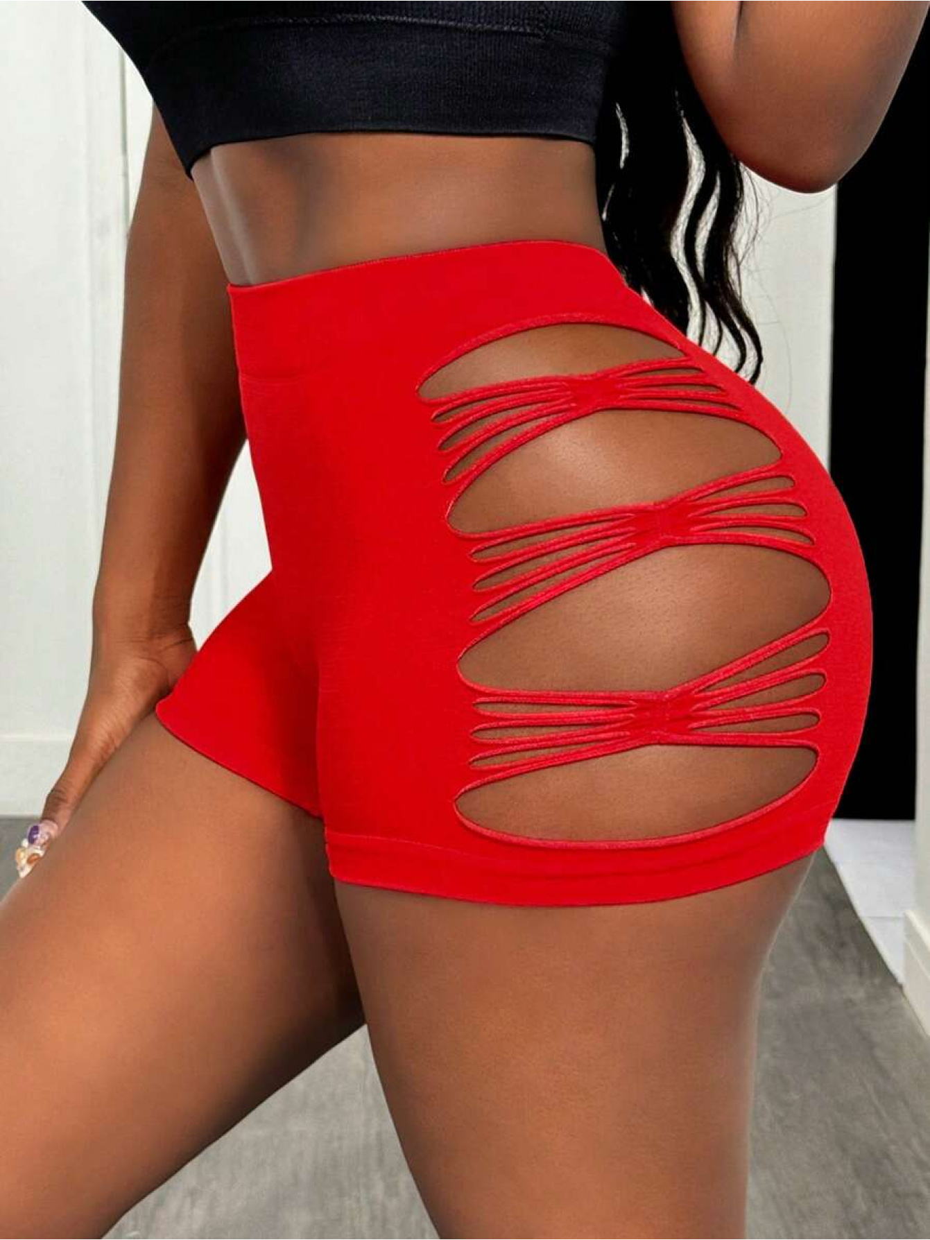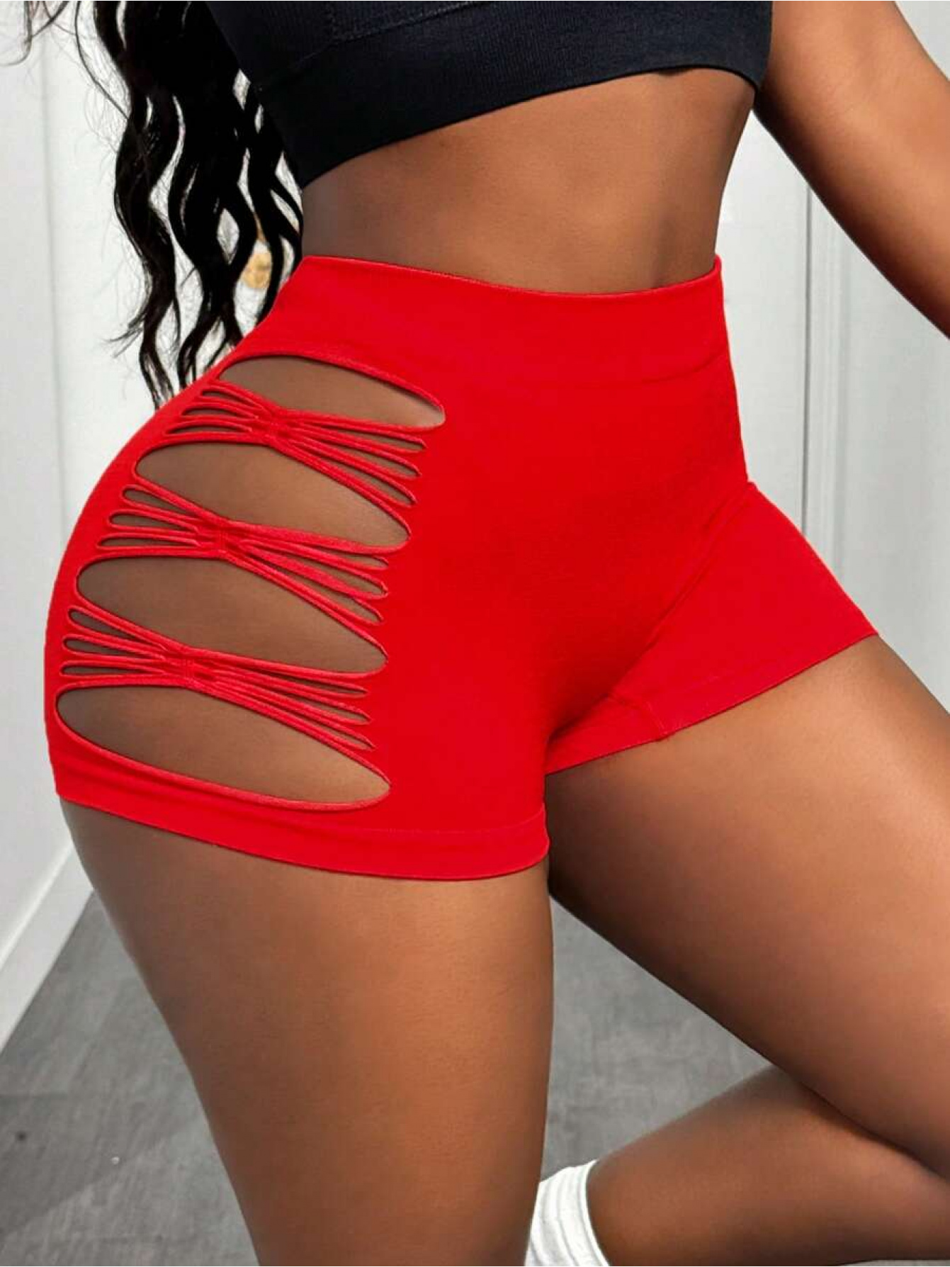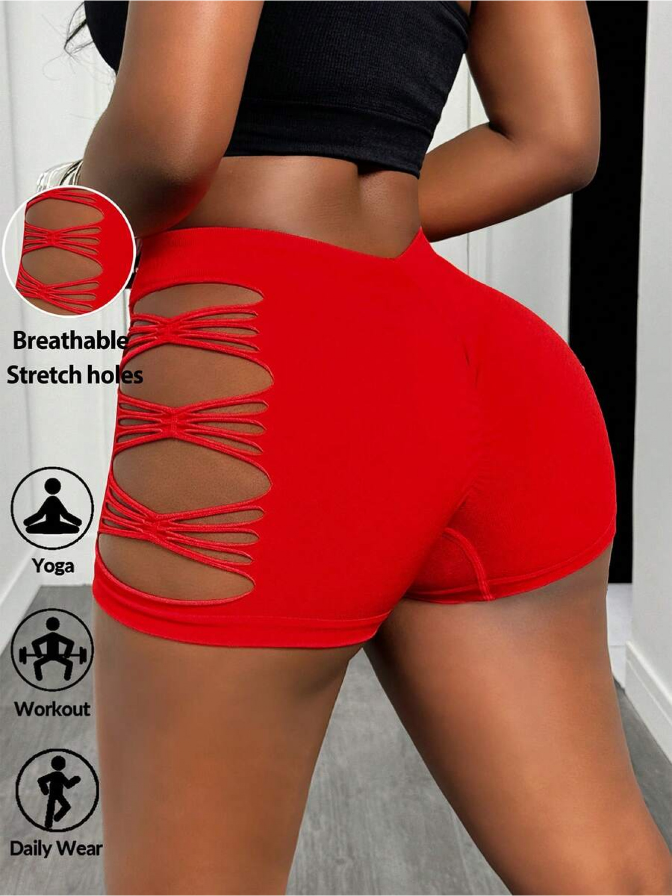 1pc Women Ripped Backline V-Neck Ultra Short Running Shorts | High Stretch Fabric, Solid Color, Cross Strape Detail, Suitable for All Seasons