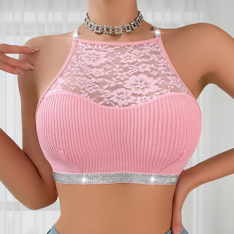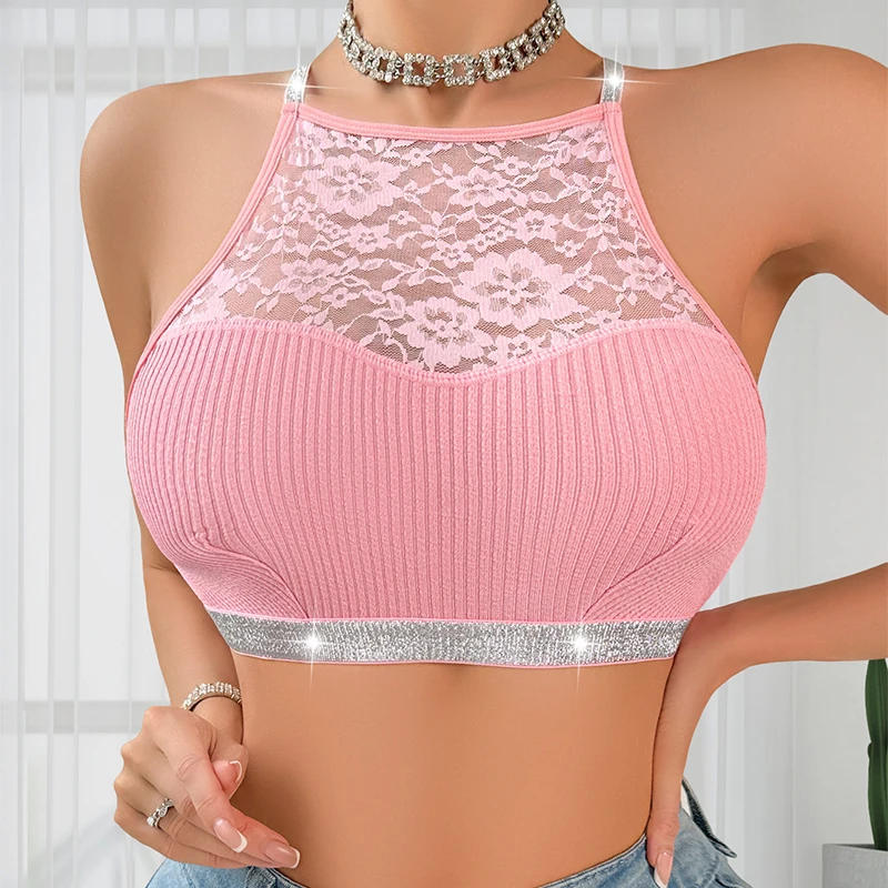 1pcs Sexy Lace Floral Camisole No Pad Ribbed Sexy Lingerie Breathable Comfortable Lady Tanks Top Charming Party Vest Underwear