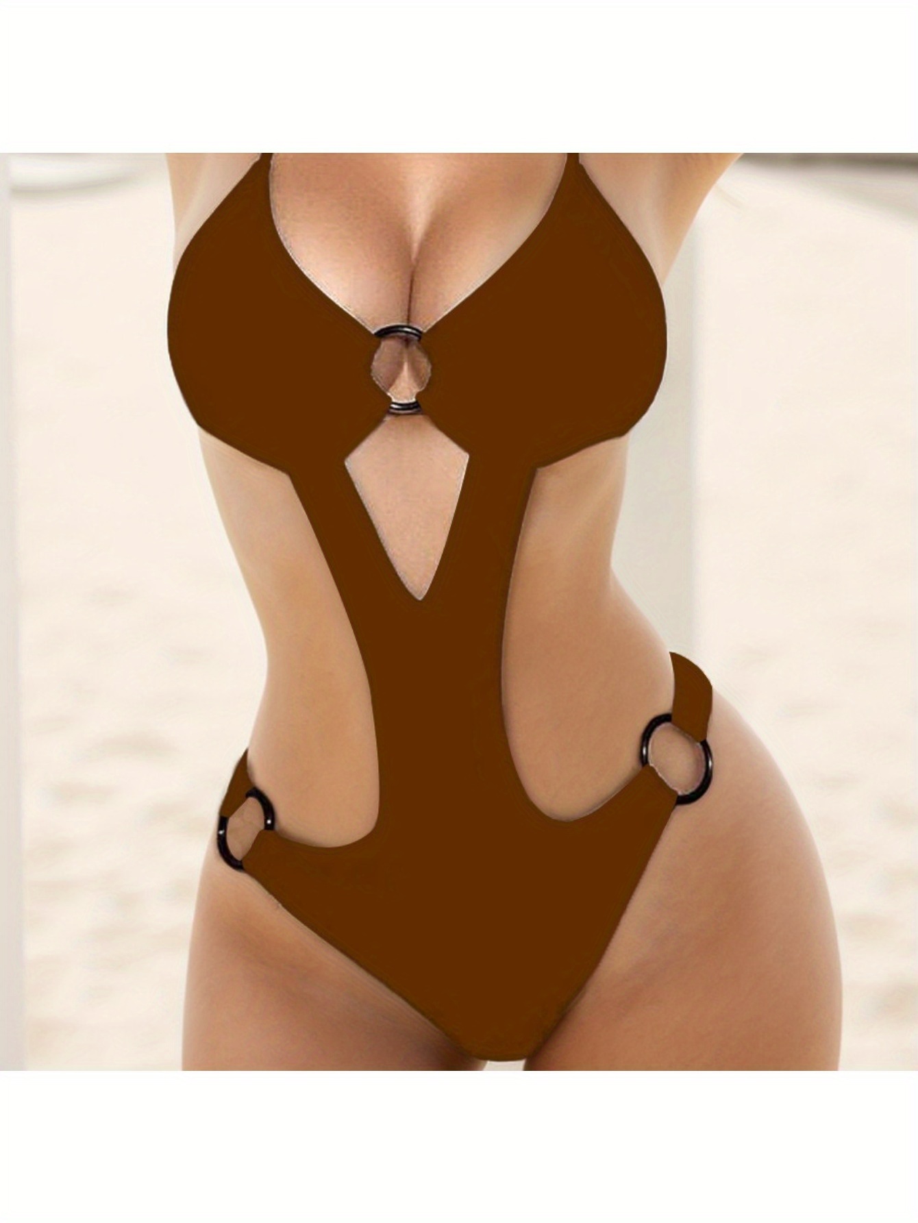 2025 New Women’S Sexy Ring One-Piece Swimsuit – Solid Color Elegant Design with Adjustable Drawstring, High Stretch Fabric, One-Piece Cut for Beach & Pool, Poolside Attire | Elegant Swimsuit | Adjustable Swimsuit