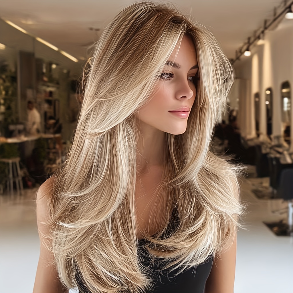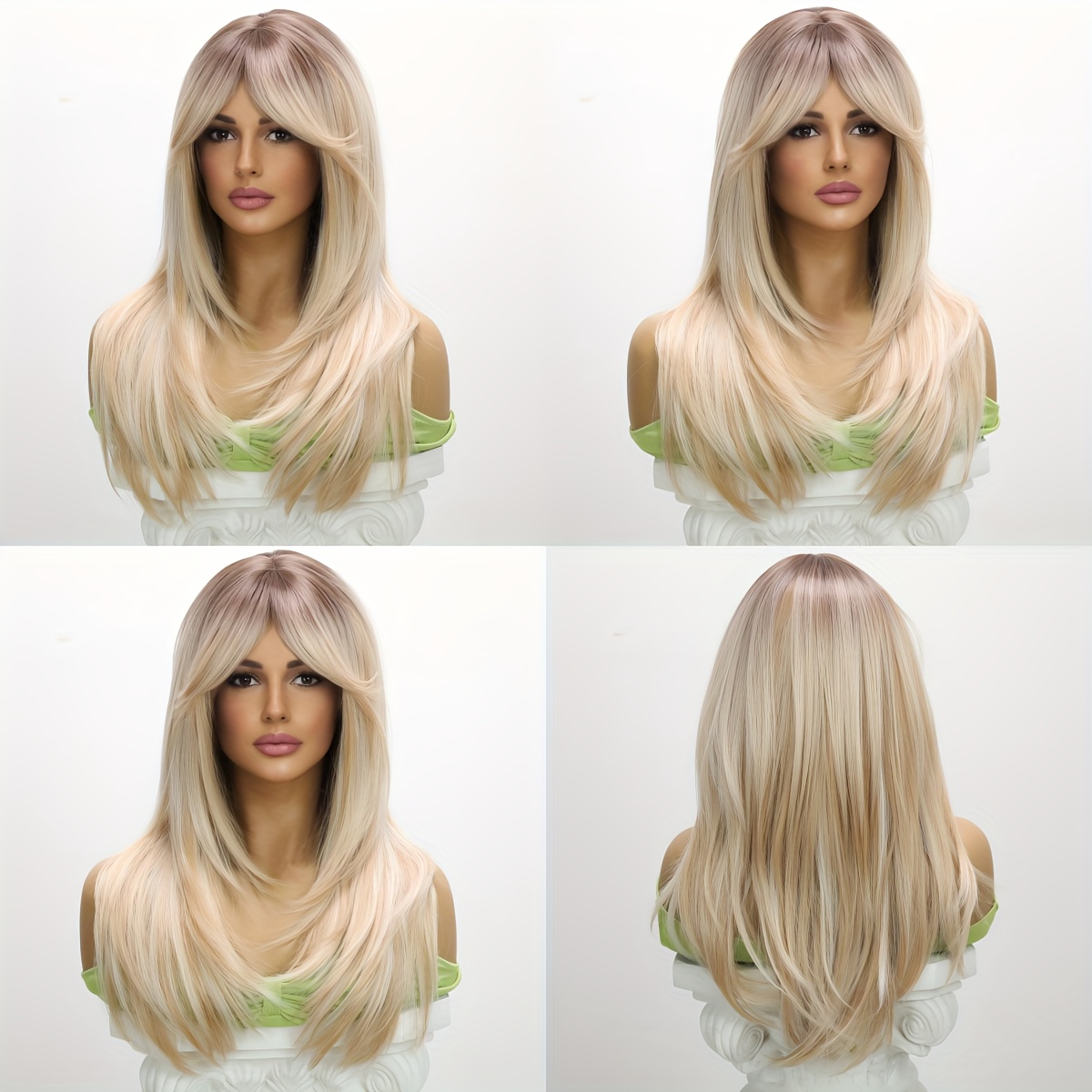 22-Inch Ombre Platinum Blonde Wig for Women – Heat-Resistant Synthetic Hair, & Lightweight, Straight Style, Rose Net Cap, Perfect for TikTok, Instagram