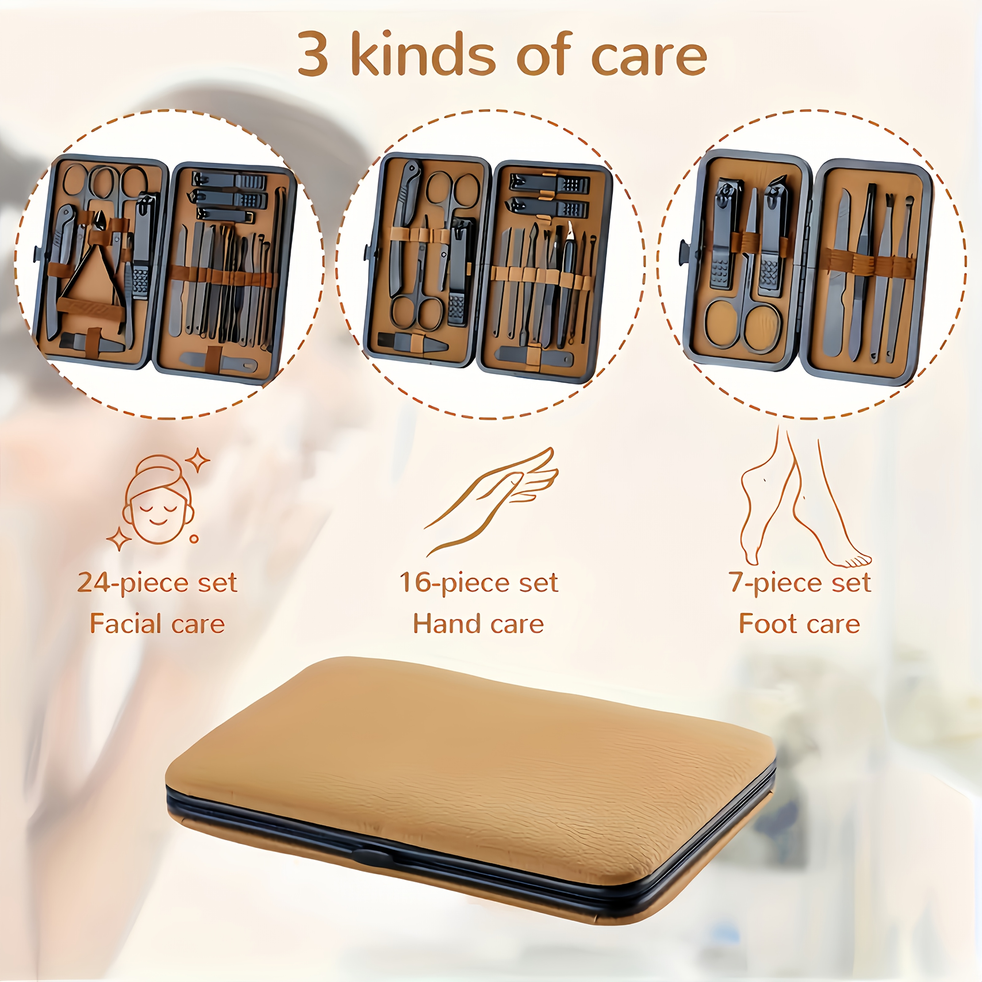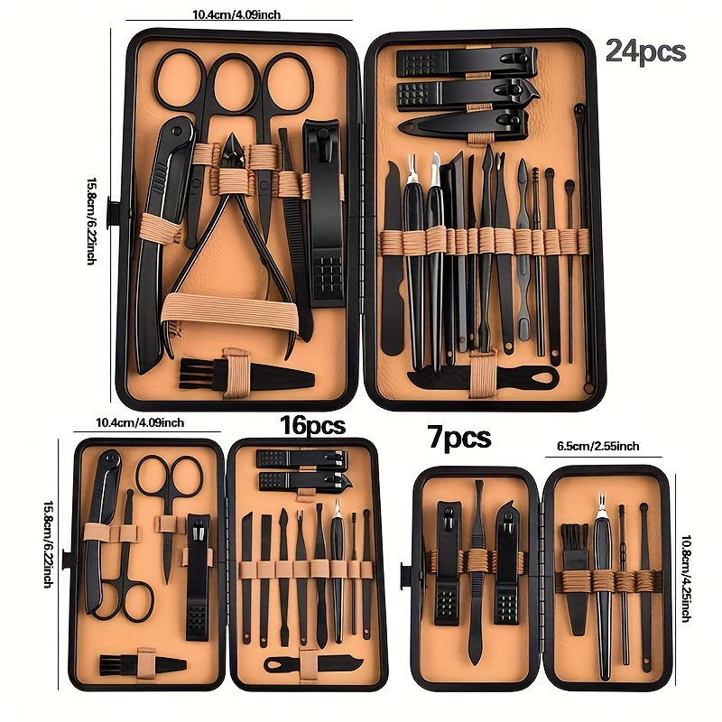 24/16/7pcs Luxury Stainless Steel Nail Clippers & Manicure/Pedicure Set Suitable for Men and Women – Professional Folding Clipper Kit with Carrying Case, Travel-Friendly Grooming Tools for Toenails & Fingernails, 24/16/7 Clipper Count