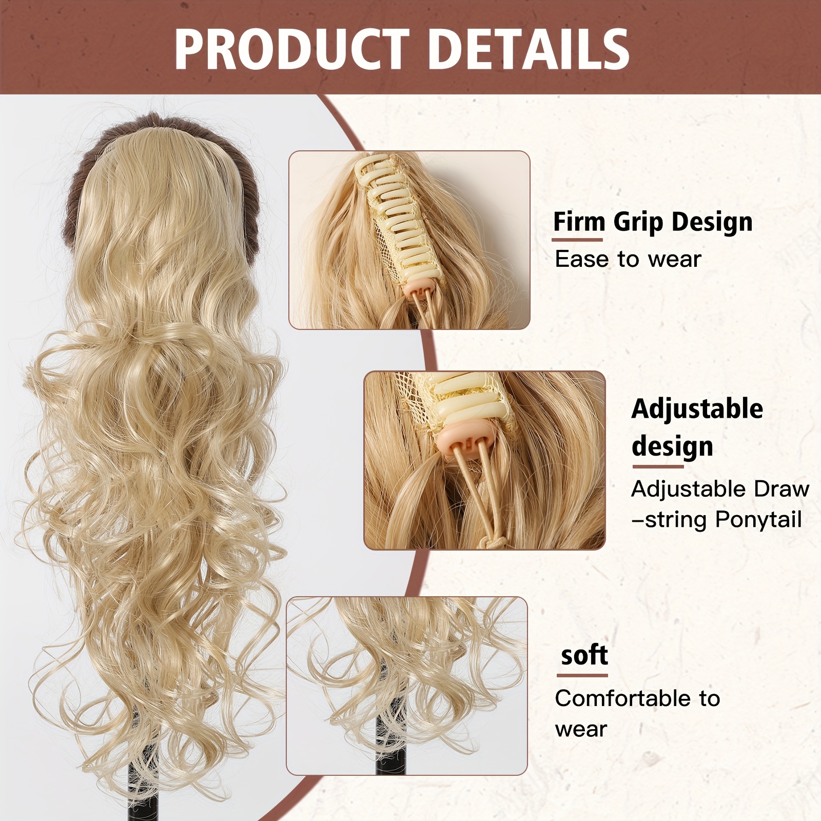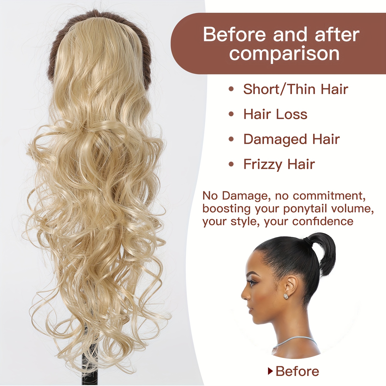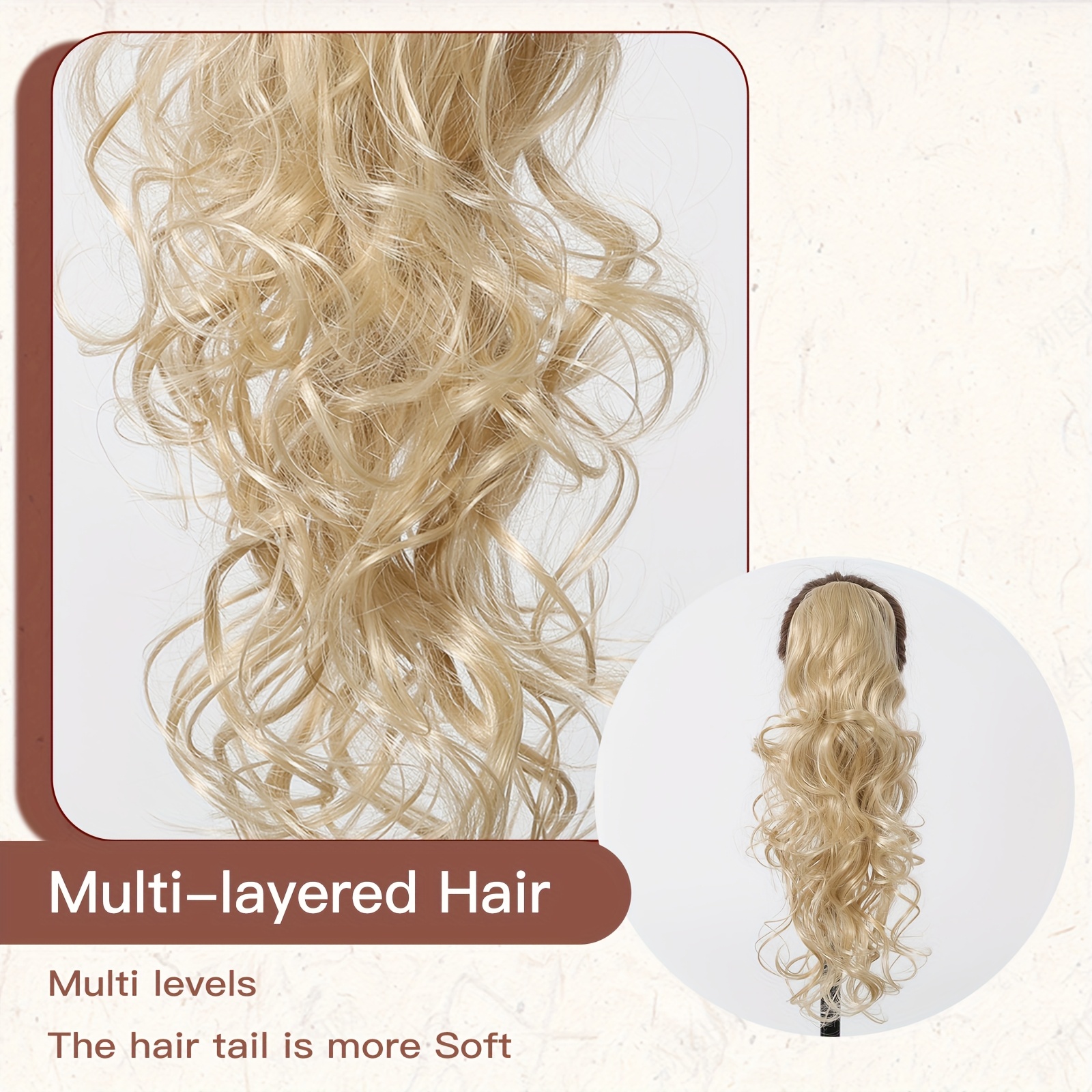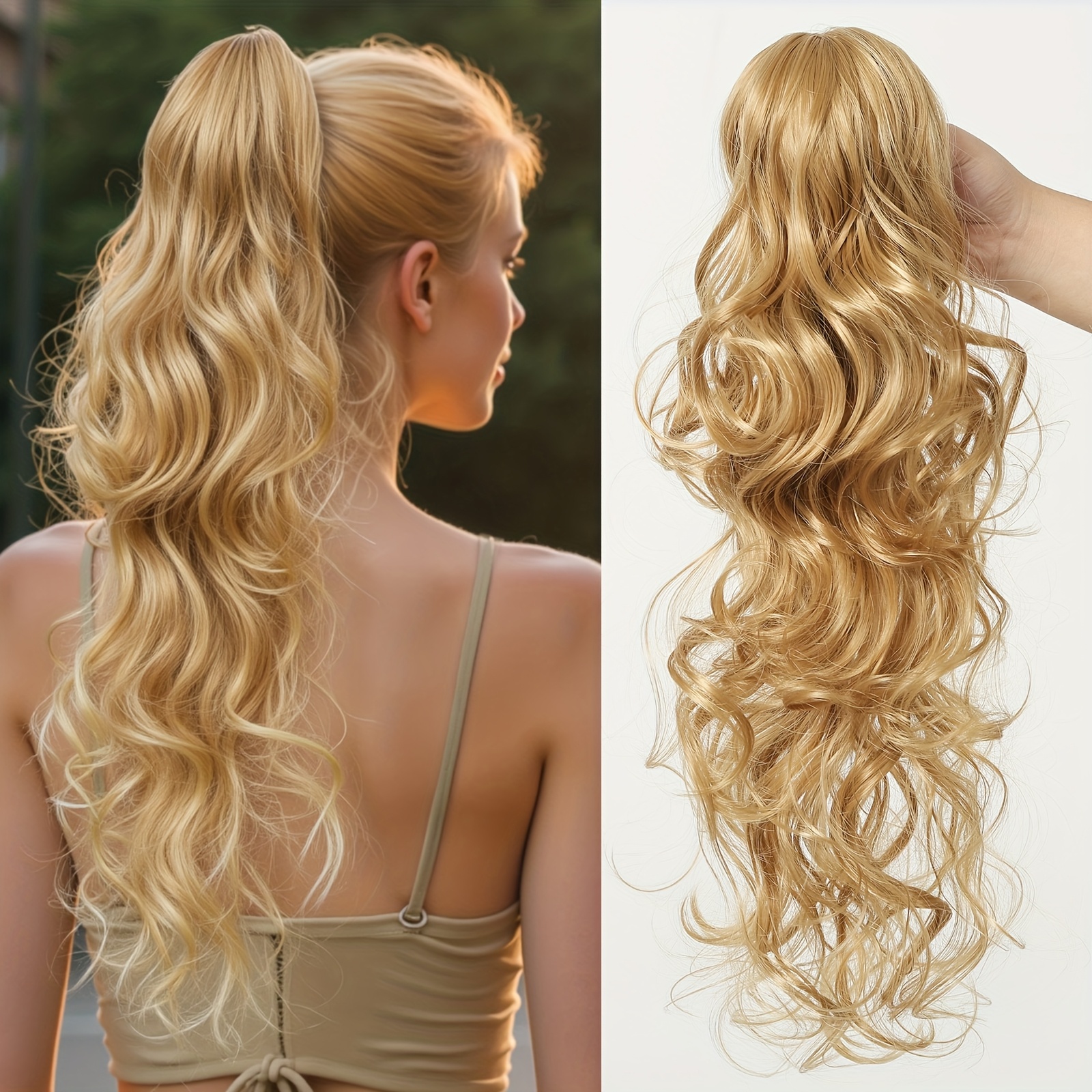 24 Inch Long Curly Ponytail Hair Extensions, Suitable for All People, High-temperature Synthetic Wigs, Women’s Wigs, Clip on Ponytails, Suitable for Daily Wear, Parties, Lightweight, Fashionable, Elegant, Easy to Wear