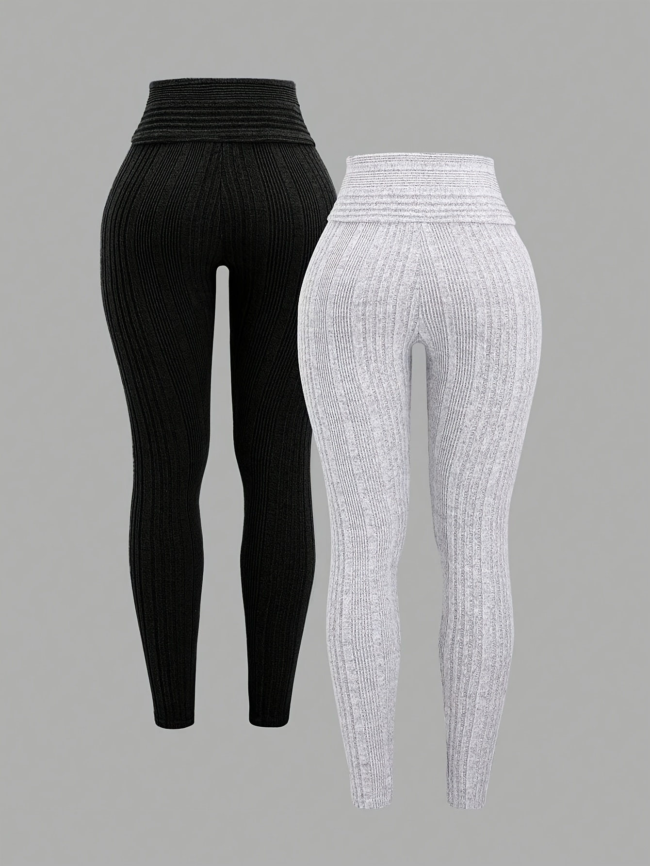 2pcs Women’S High-Waisted Stretch Leggings – Soft Light Beige-Friendly Fabric, All-Season Cross-Back Design, Solid Color, Casual Style, Comfortable & Stylish, Comfortable Clothing | Highwaisted Leggings | Soft Fabric Leggings