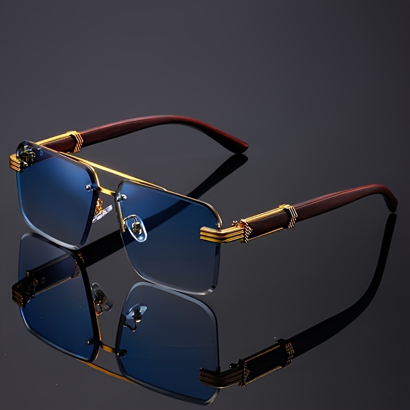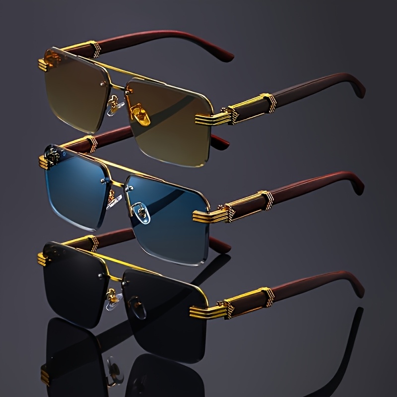 3pcs retro Golden fashion glasses Women’s elegant trimmed lenses classic wood grain glasses Men’s photo decoration square party glasses