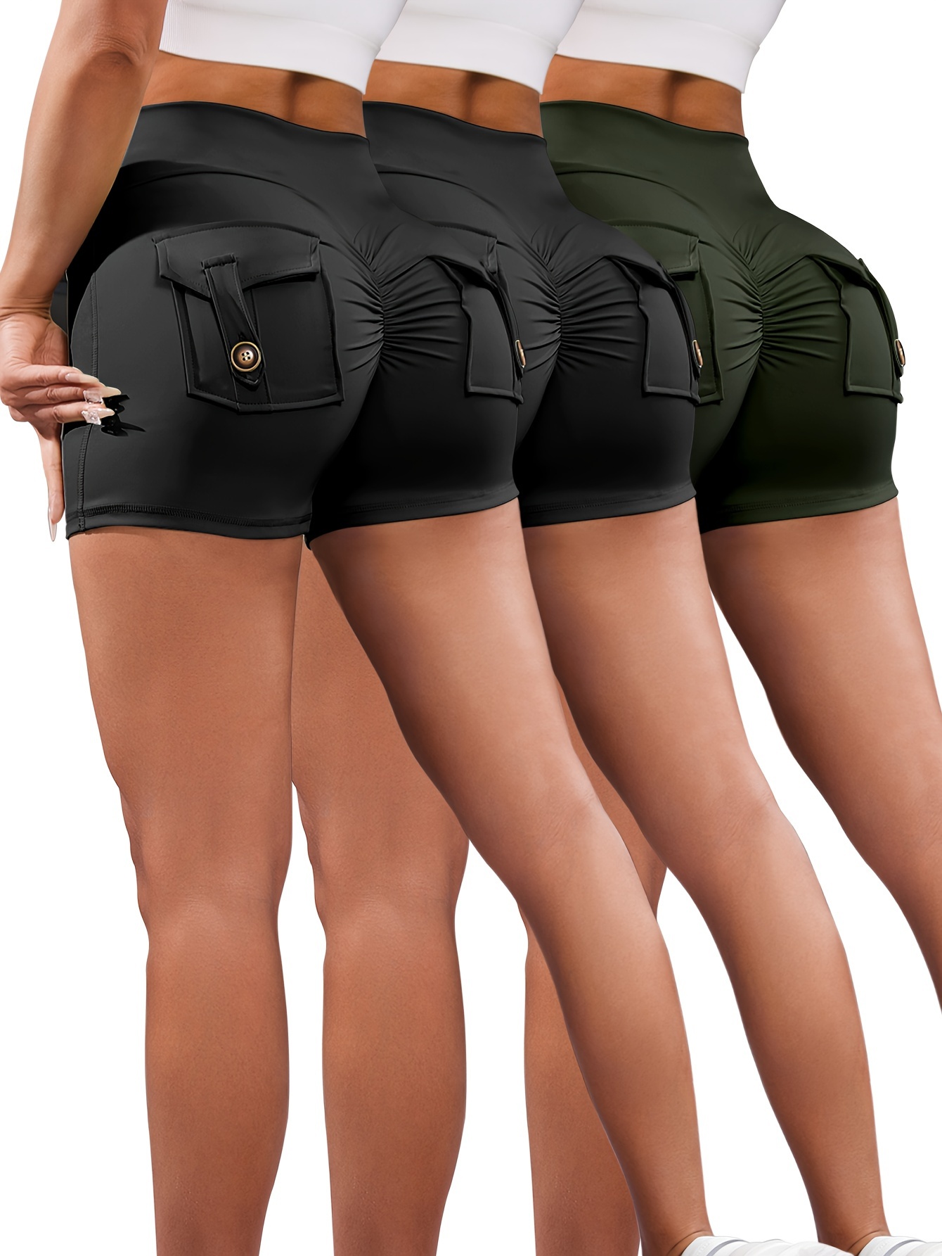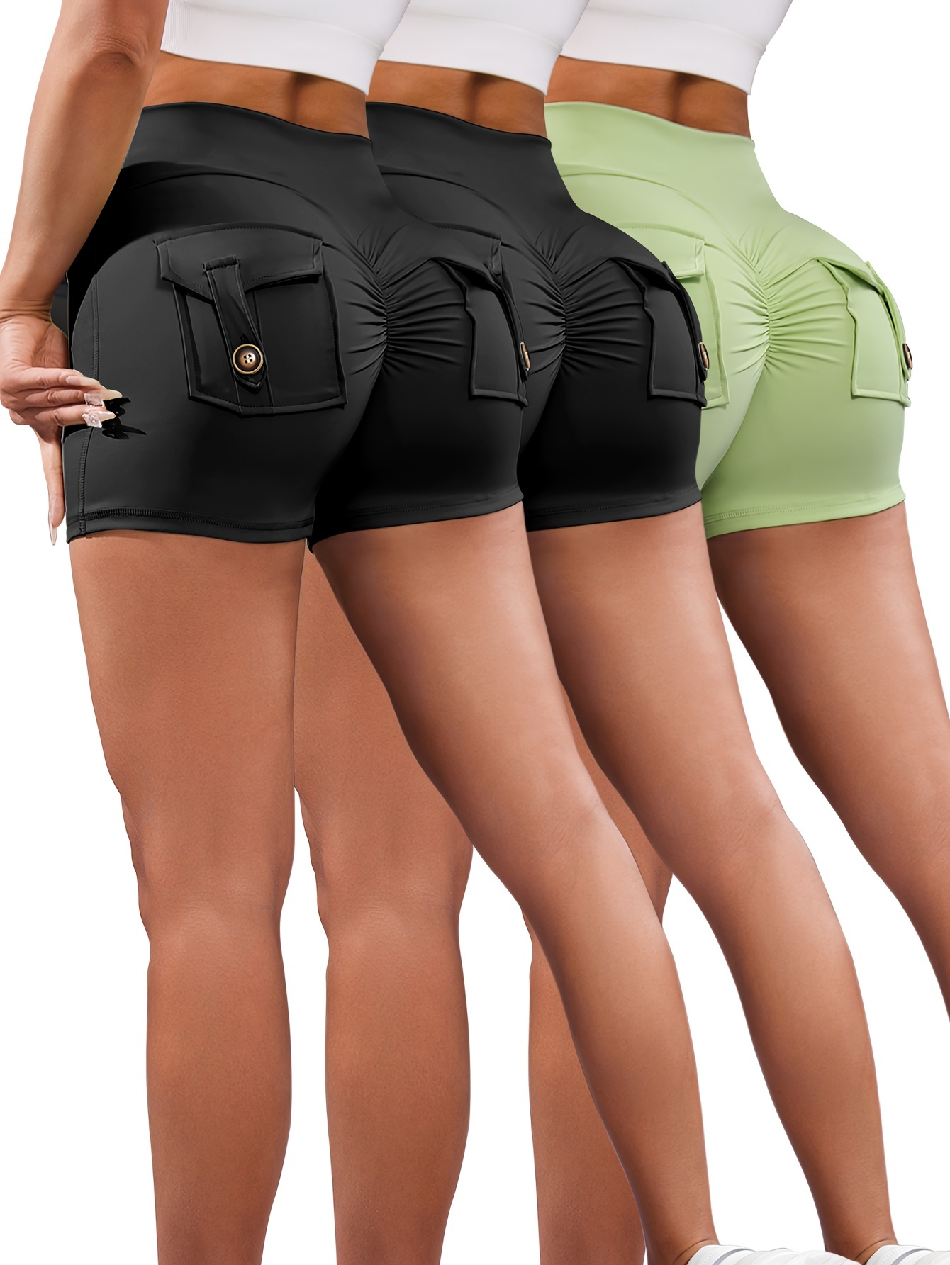 3pcs Women’s High-Waisted Butt Lifting Workout Scrunch Shorts with Pockets – Yoga & Gym Booty Shorts, High-Elasticity Machine-Washable Tight-Fit Solid Color for Spring Summer Fall, Fitness Apparel | Sleek Design | No Transparency Fabric, Gym Accessories