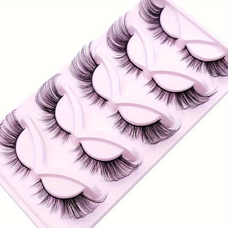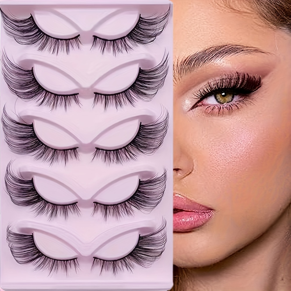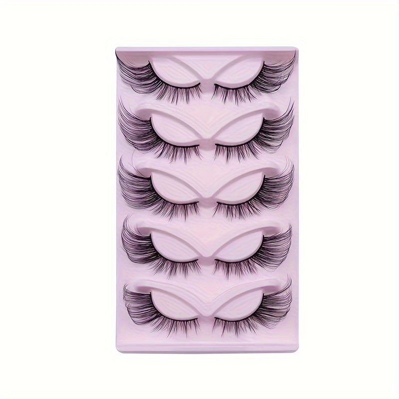 5 Pairs Luxurious Fox Eye Look False Eyelashes, 24mm Wispy Faux Mink, Fluffy Cat Eye Style with C-Curl, Fragrance-Free – Perfect for Dramatic Eye Enhancement