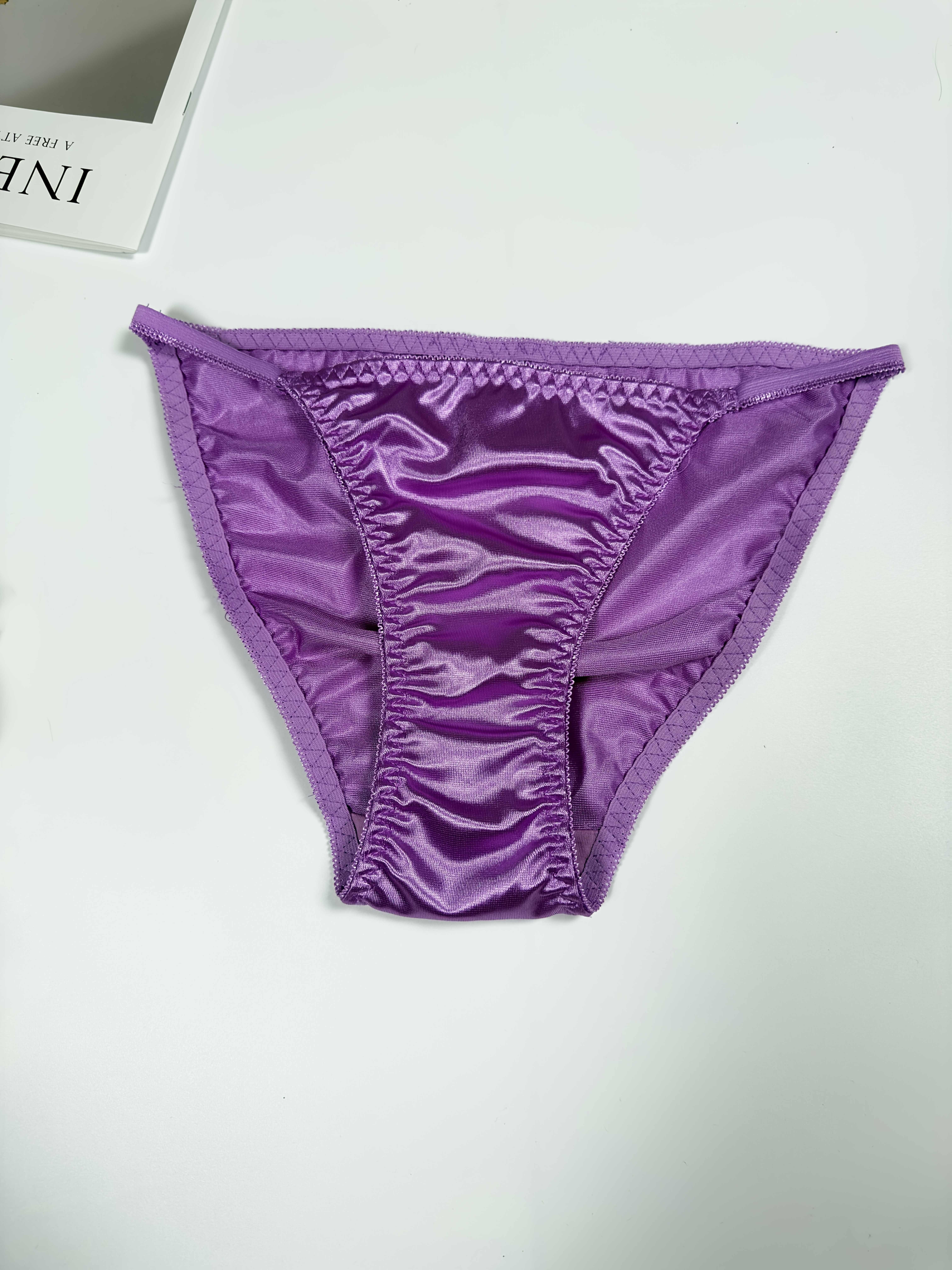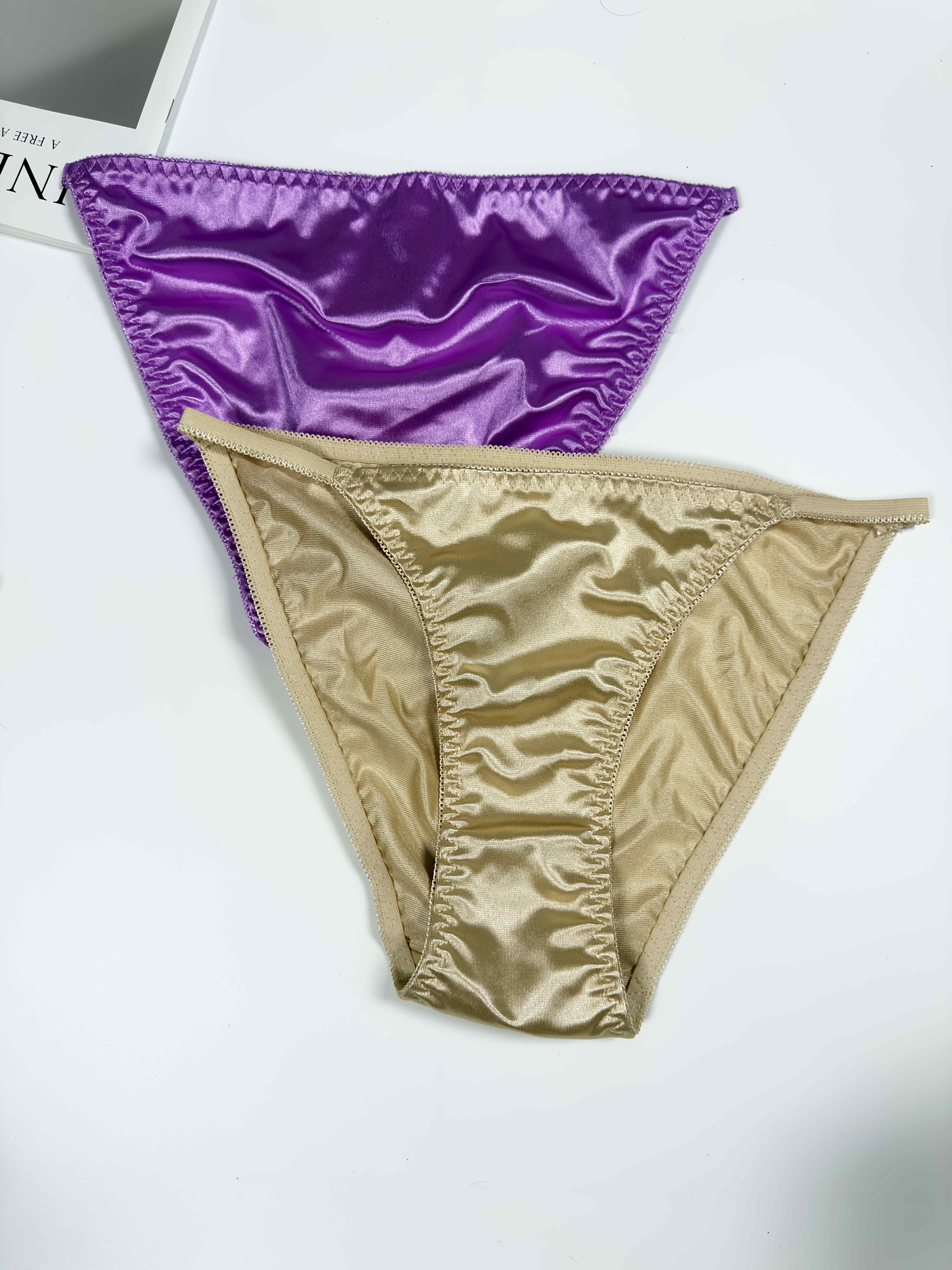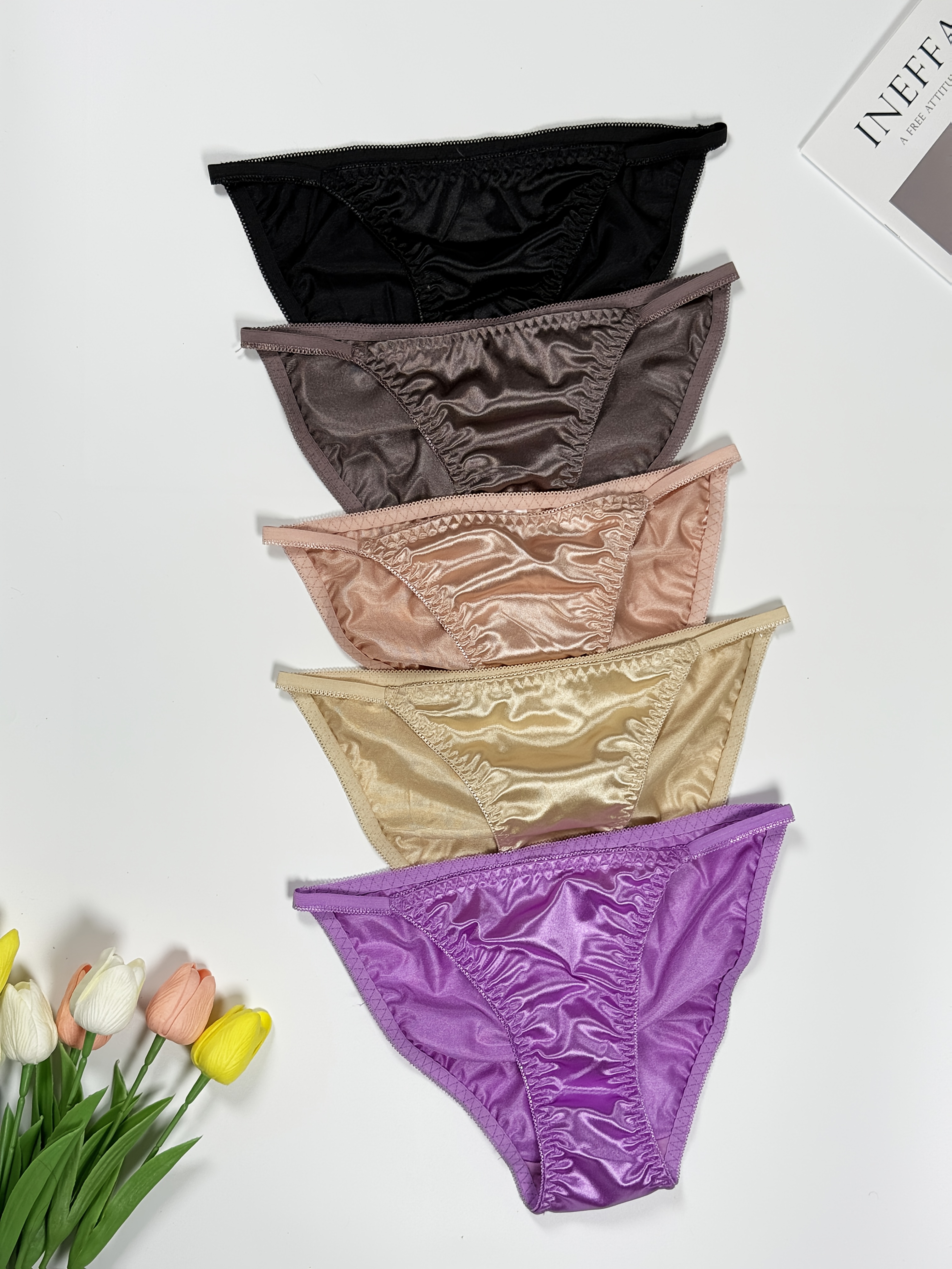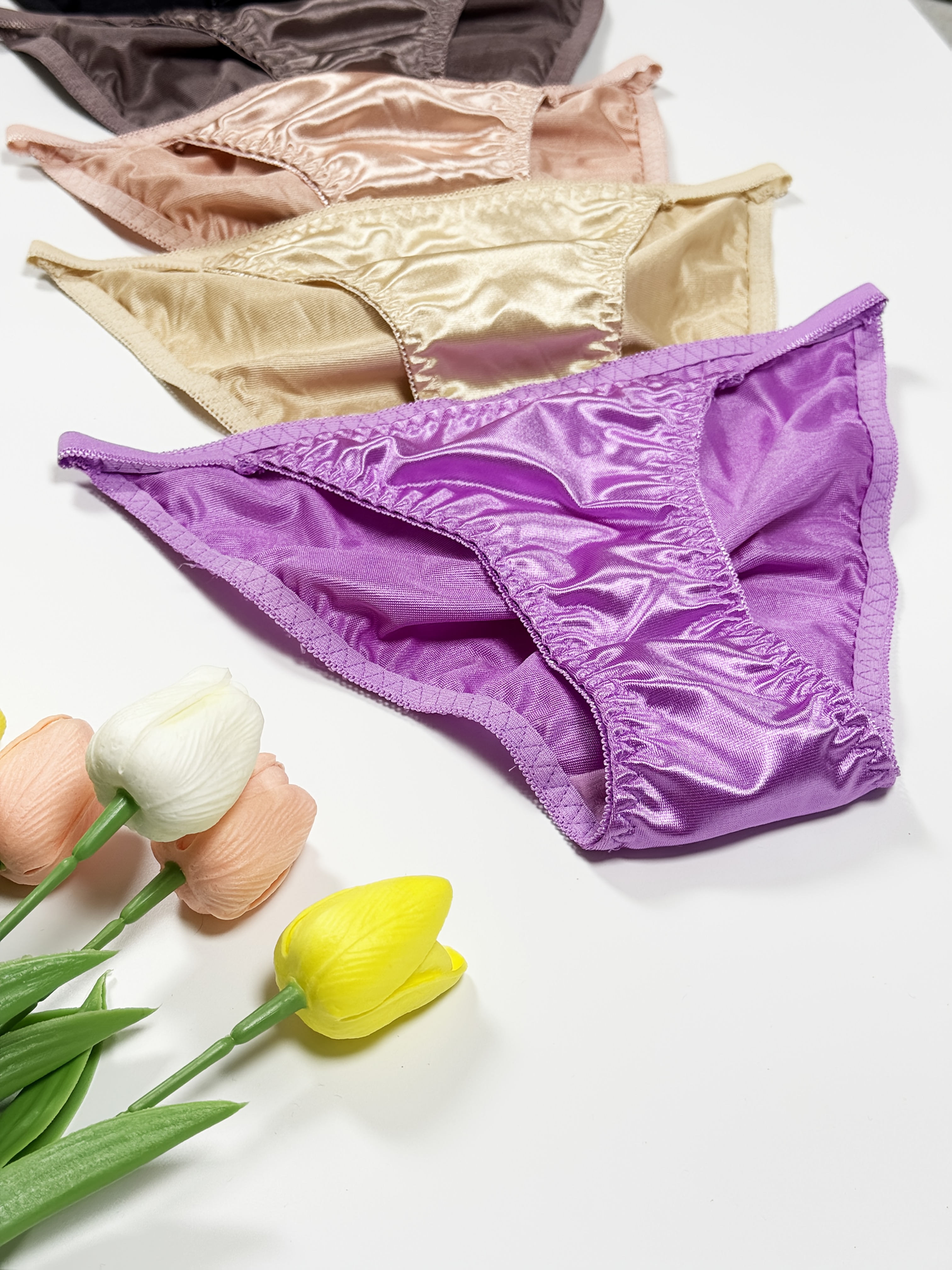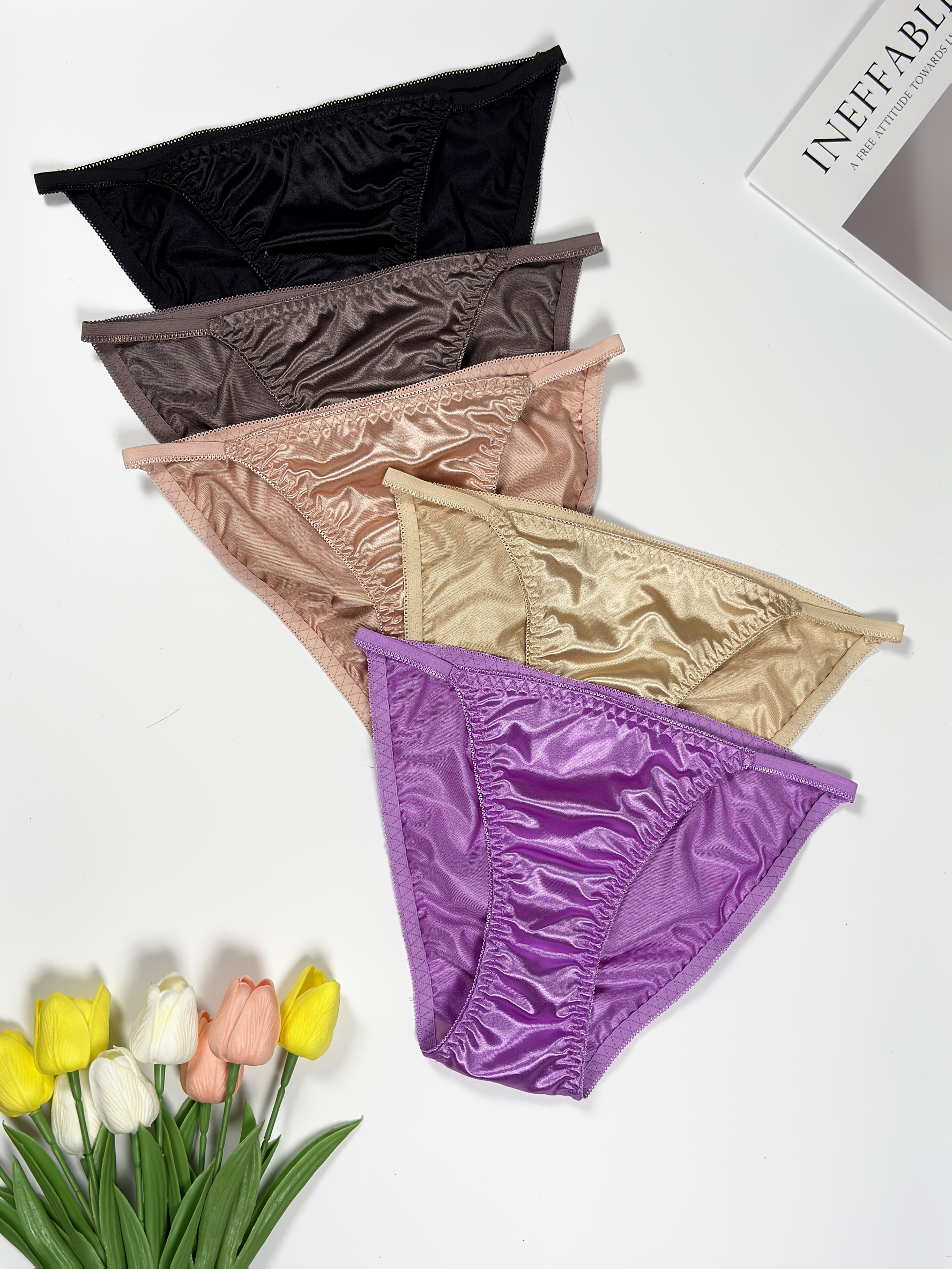 5pcs Women’s High-Waist Glossy Briefs – Low-Rise Underwear with Elastic Fit, Glossy Wrinkle Trim & Solid Color (Non-Sheer) – Elegant for daily Wear, Lifestyles – Pack Value (5)