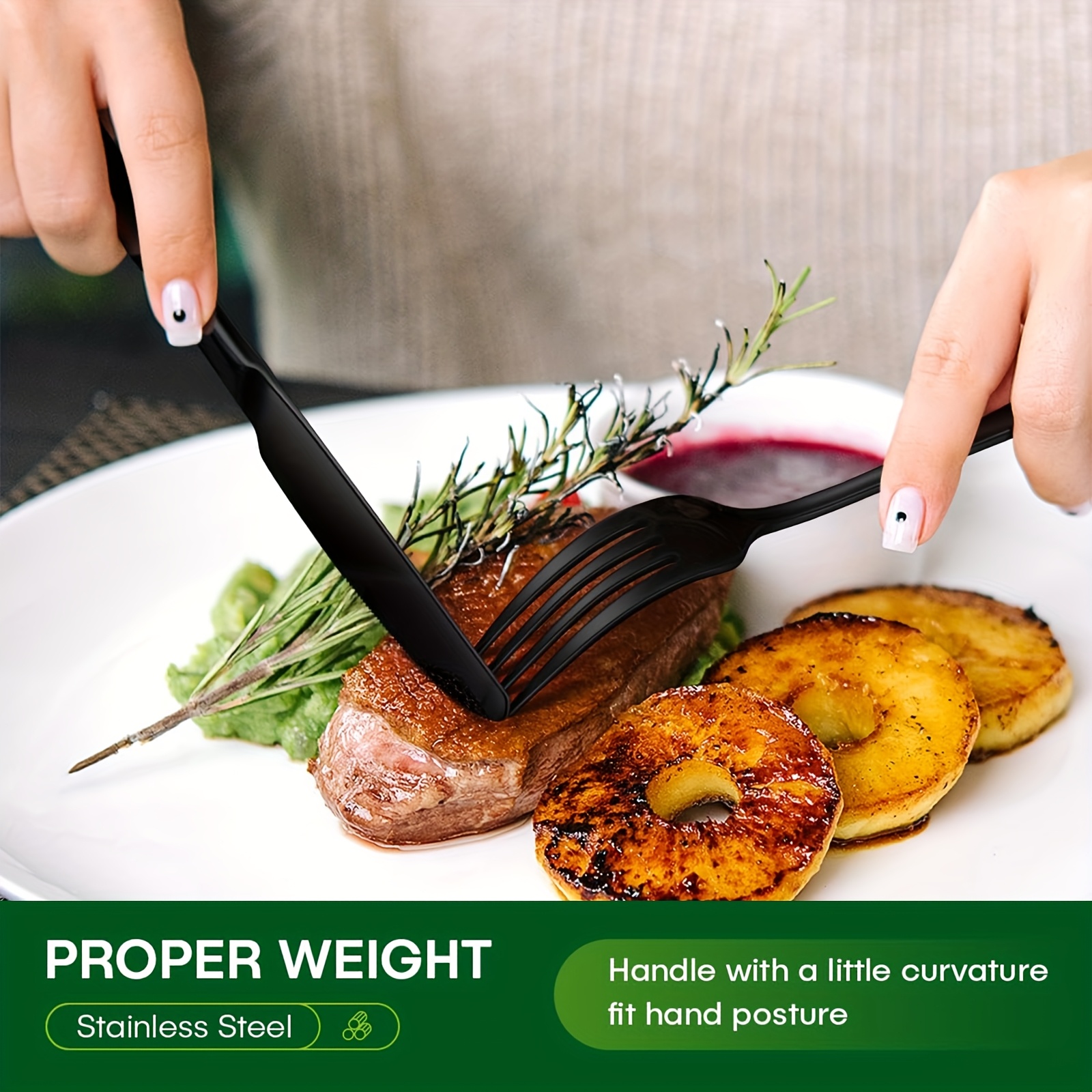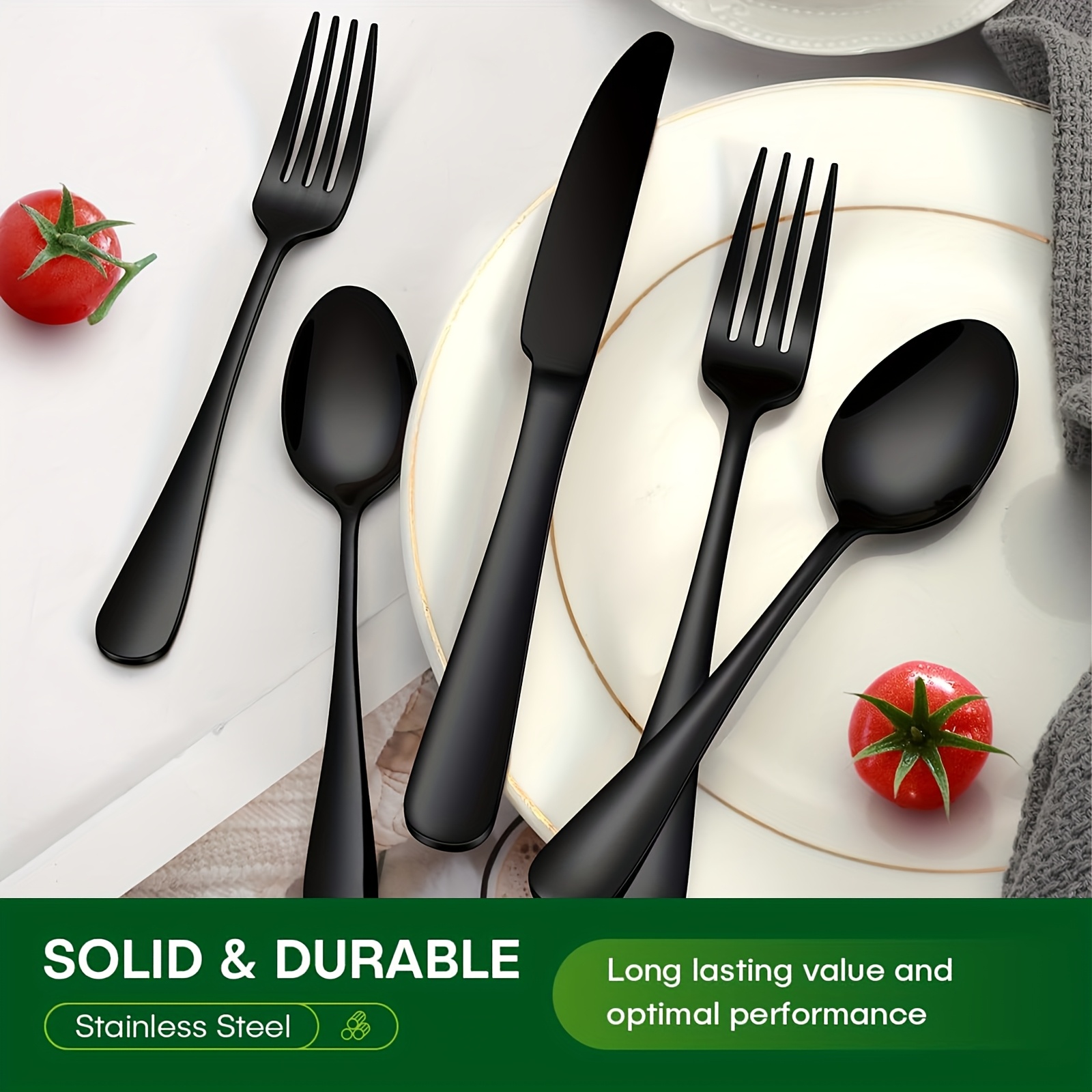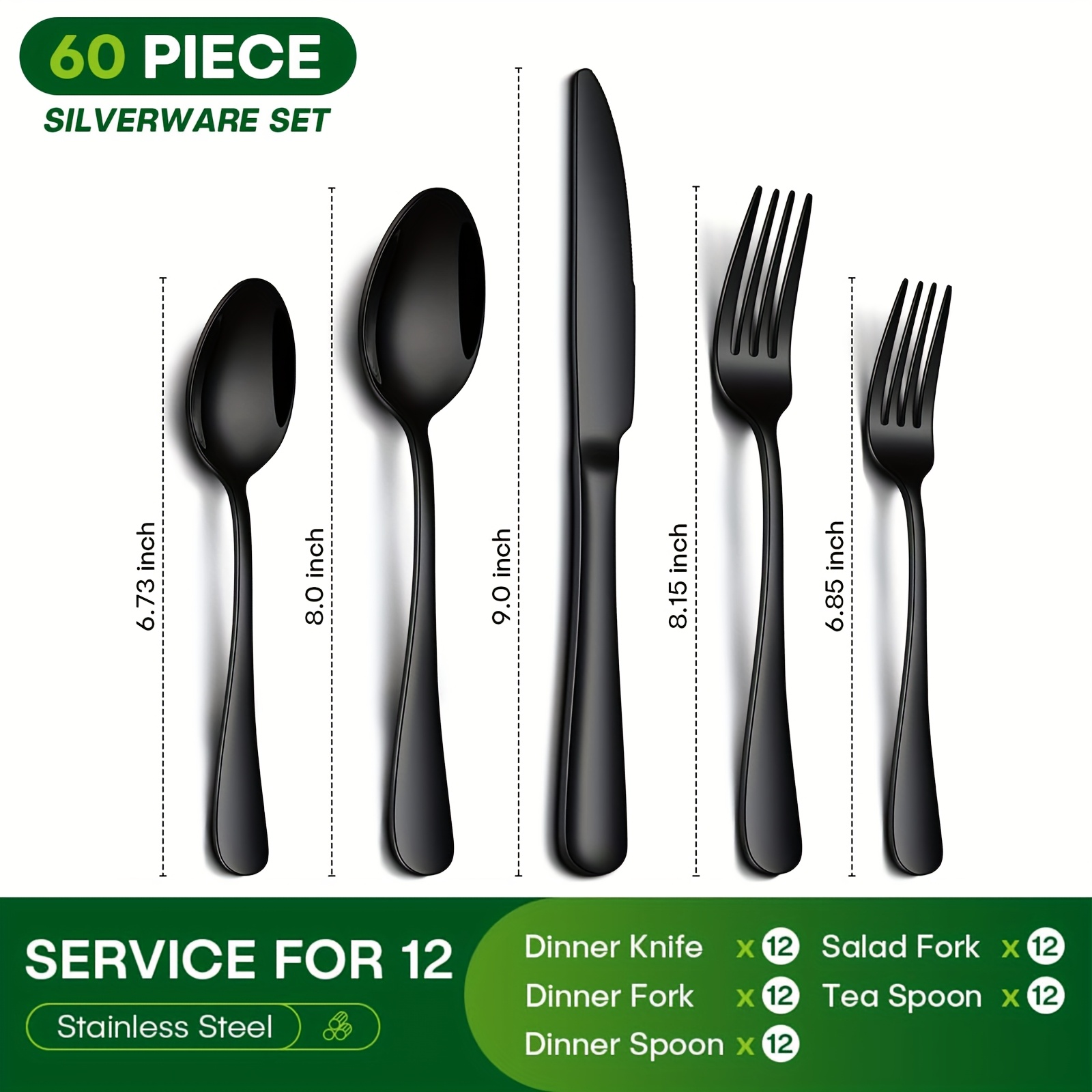 60pcs Black Stainless Steel Cutlery Set | Steak Knife, Salad Fork, Dessert Spoon, Includes Gift Box, Suitable for 12 People, Dishwasher Safe, Rust Resistant, Microwave and Safe, Ideal for Home, Outdoor, Wedding, Camping, Christmas Party