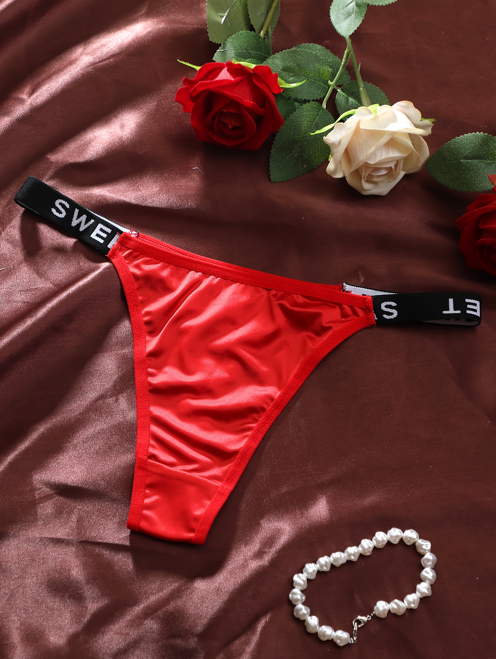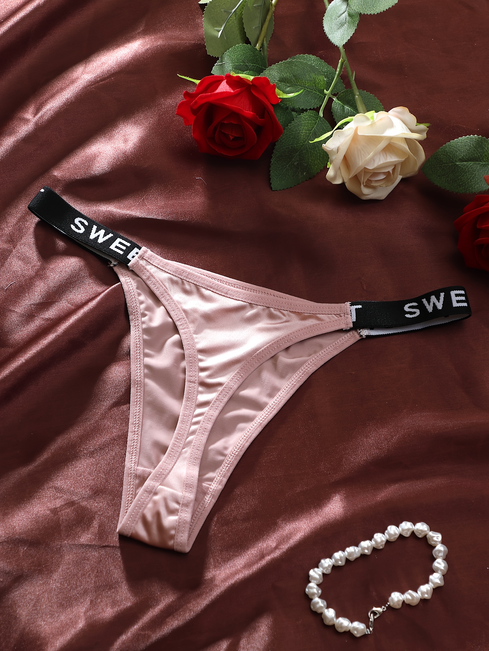 6pcs Oil-Gloss Fabric Letter Waistband Solid Color Minimalist Women’s Thong, Sexy, Attractive, Comfortable, Breathable, Skin-Friendly Women’s Underwear