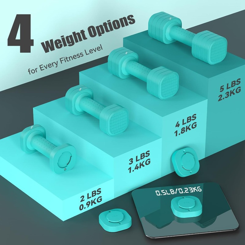 Adjustable Dumbbell Set of 2 4in 1 Free Weights Dumbbells for Women for Man Each 2lb 3lb 4lb 5lb Fast Adjust Weights with TPU Soft Rubber Handle for Home Gym Exercise Training