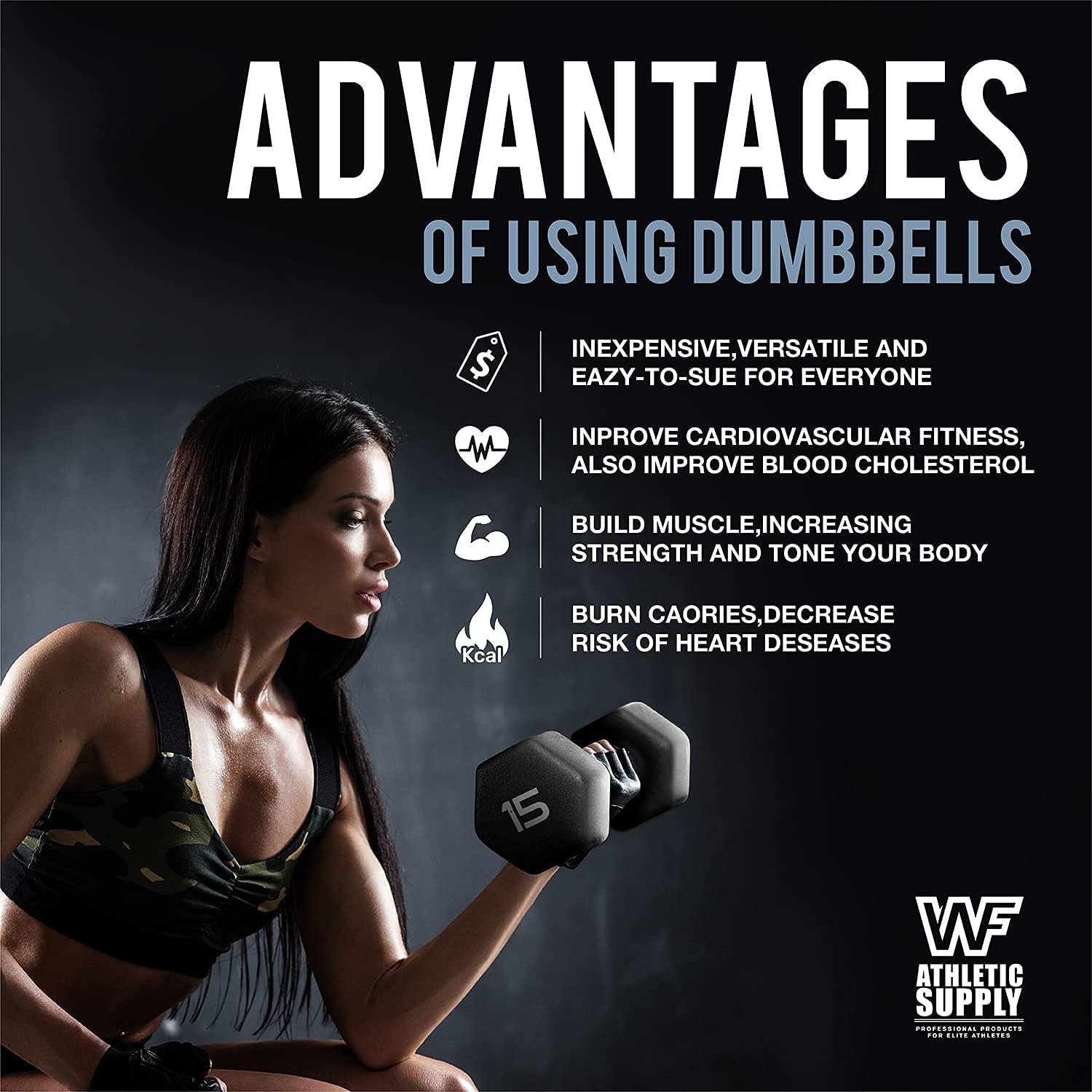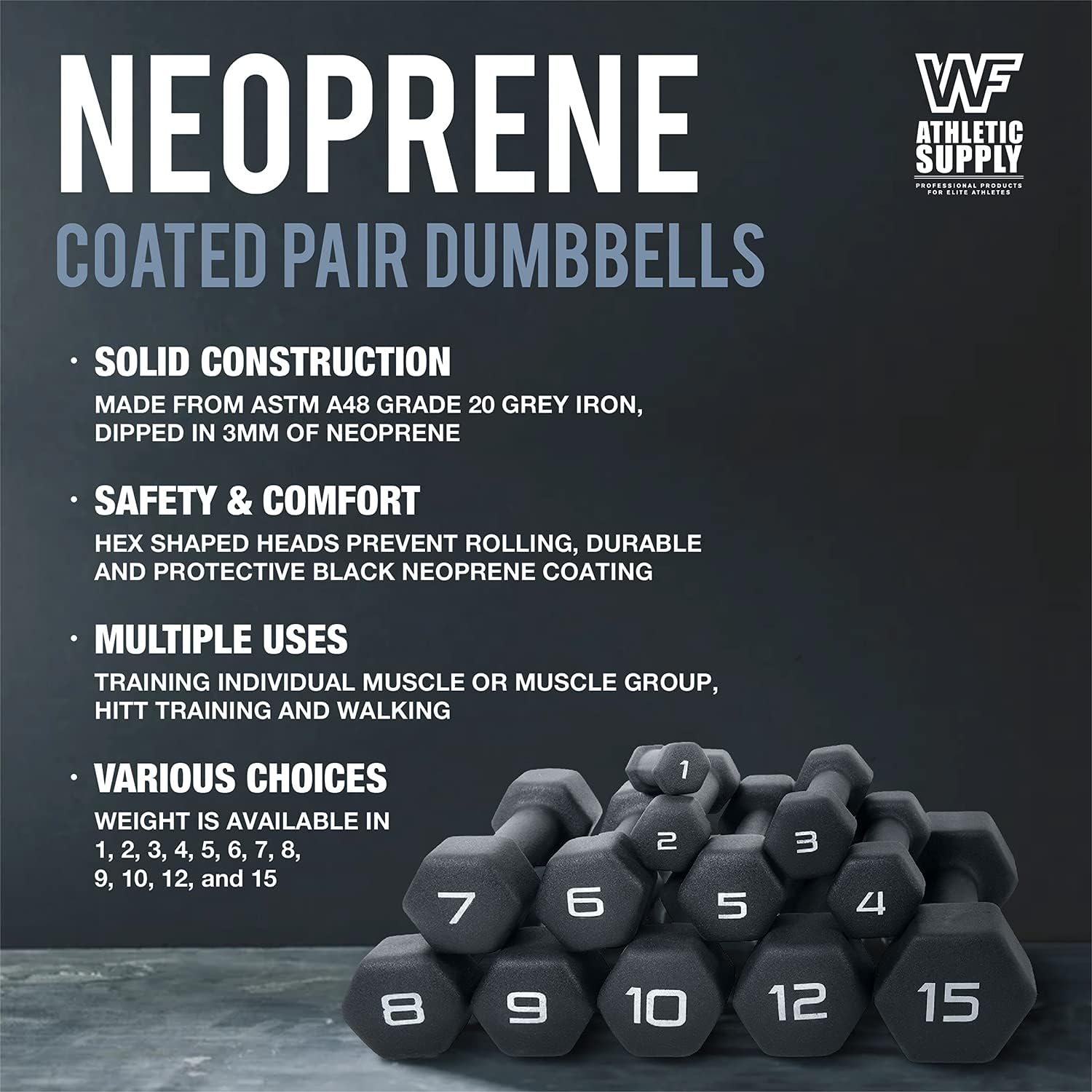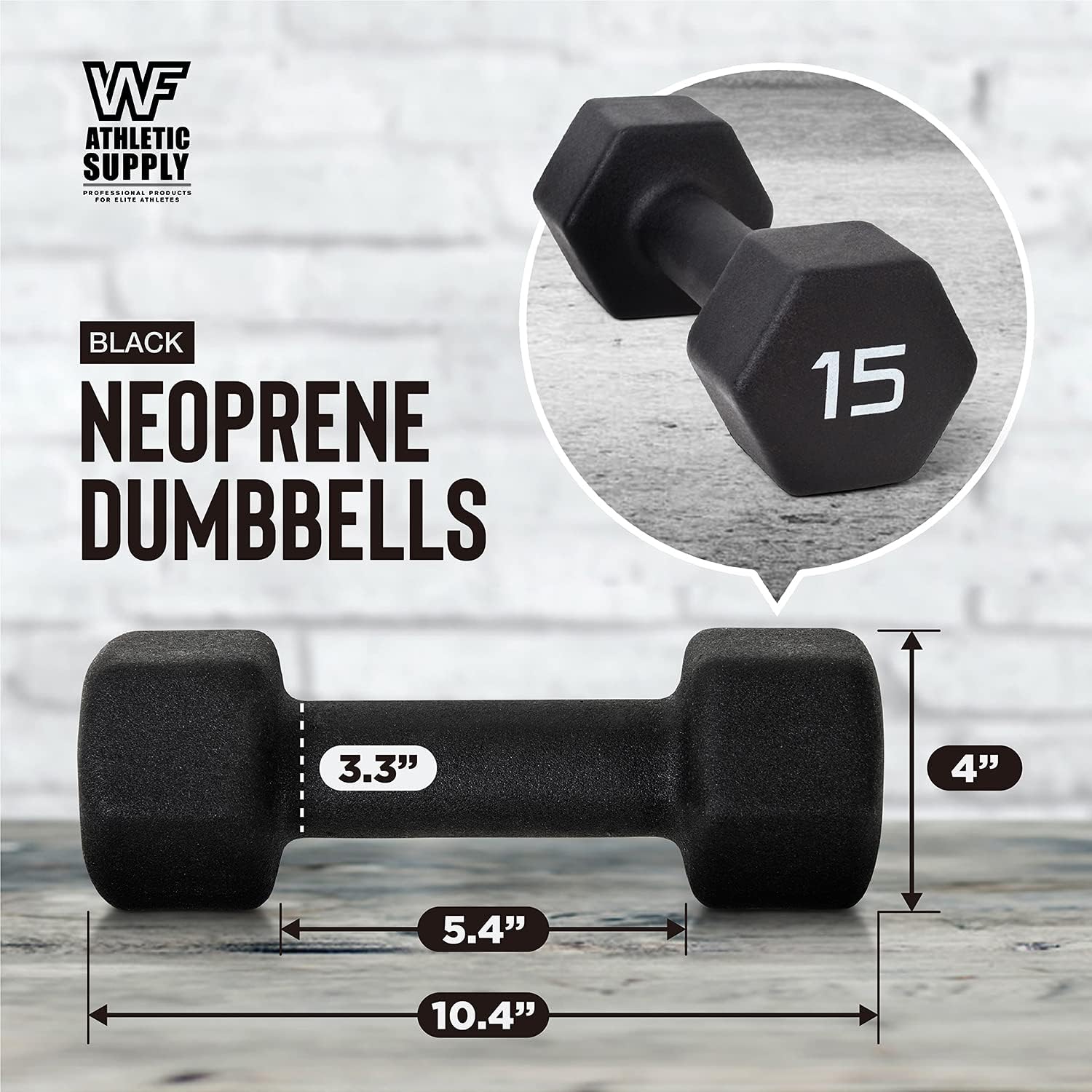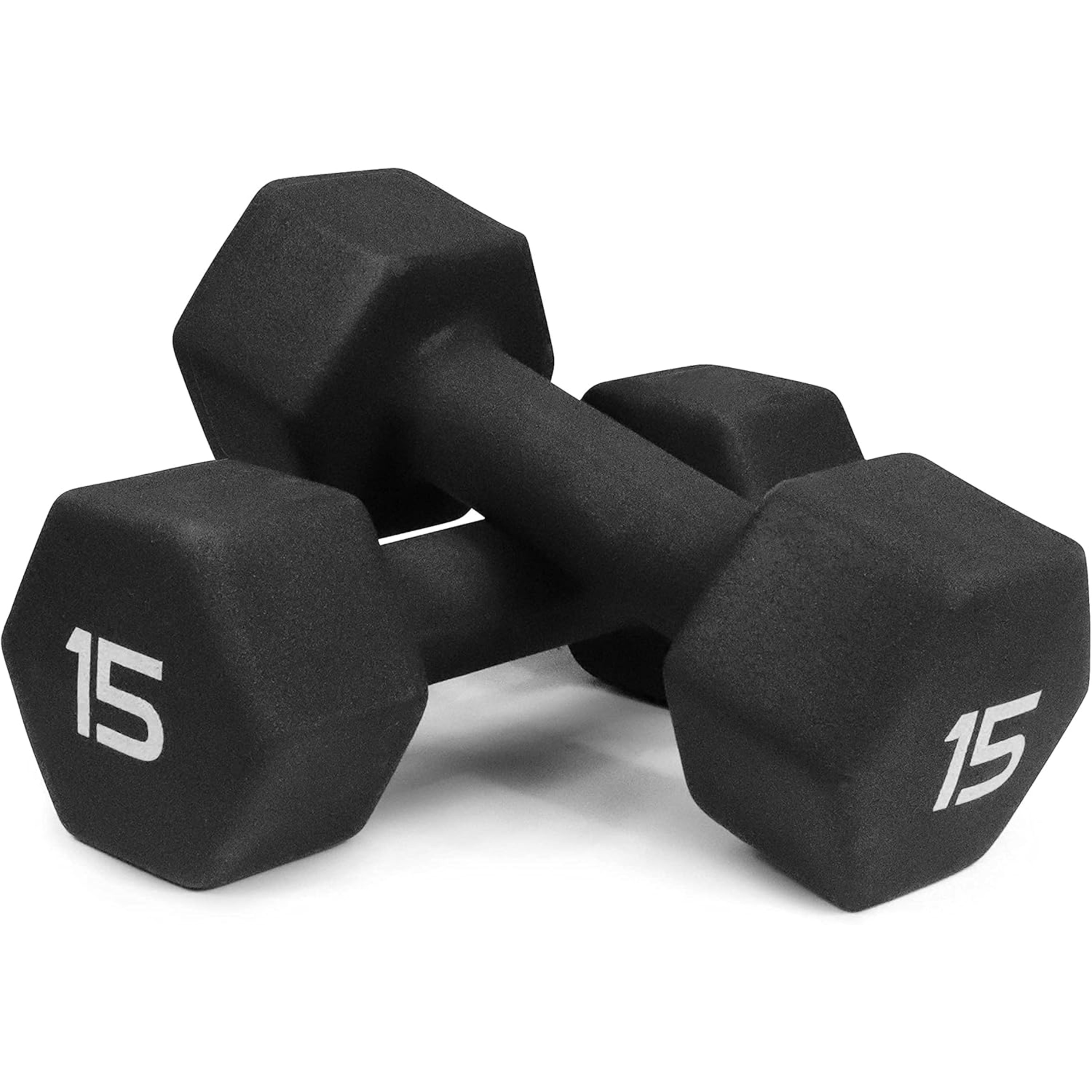 BLACK Neoprene Dumbbells, Non-Slip & Hex Shape, Great for Strength Building, Perfect for Home Use and Small Personal Training Studio, 15 LB Pair