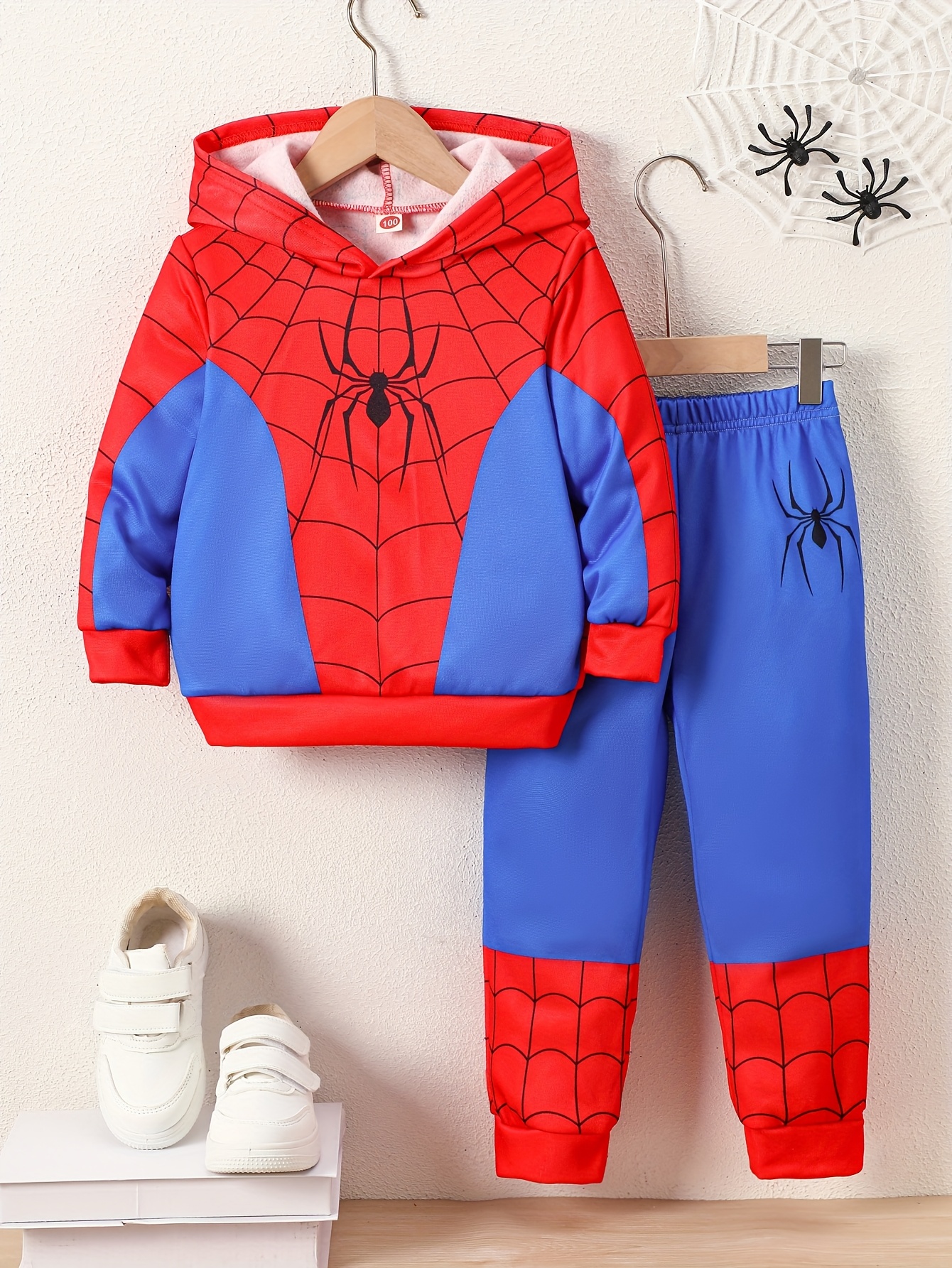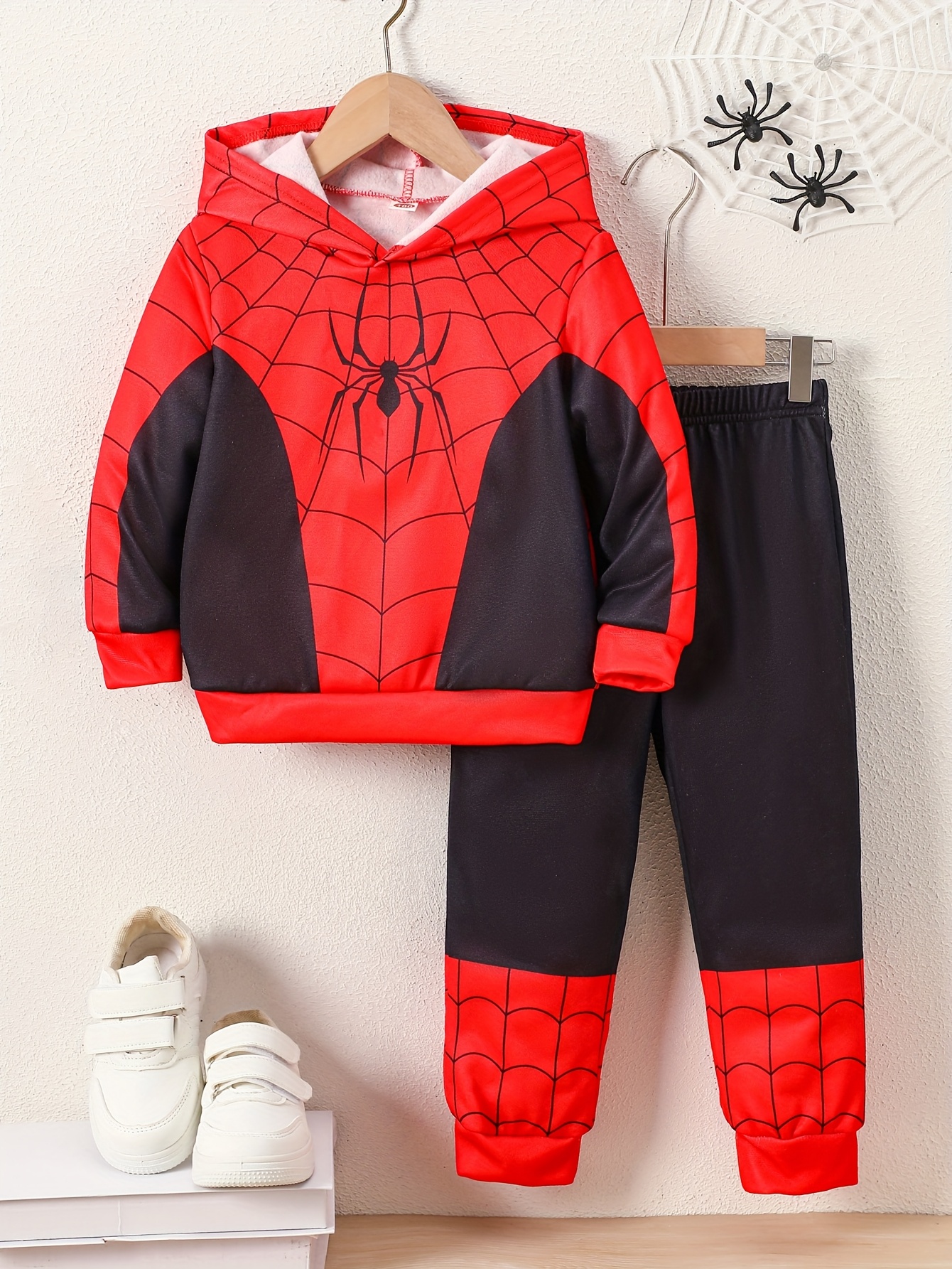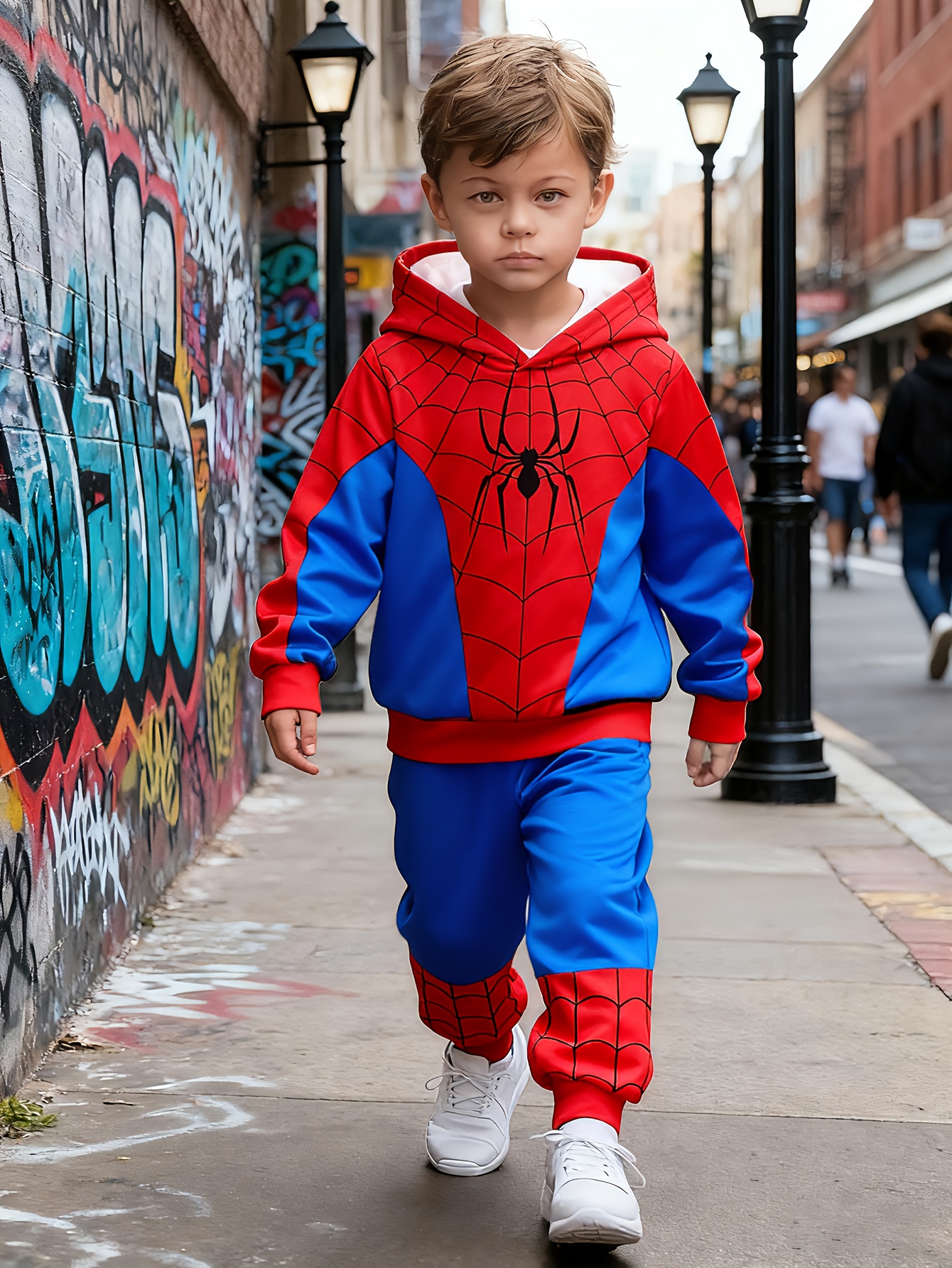 Boys’ autumn winter spider print hooded sweatshirt+contrasting pants two-piece set/outdoor party wear autumn winter/perfect gift children/comfortable fabric
