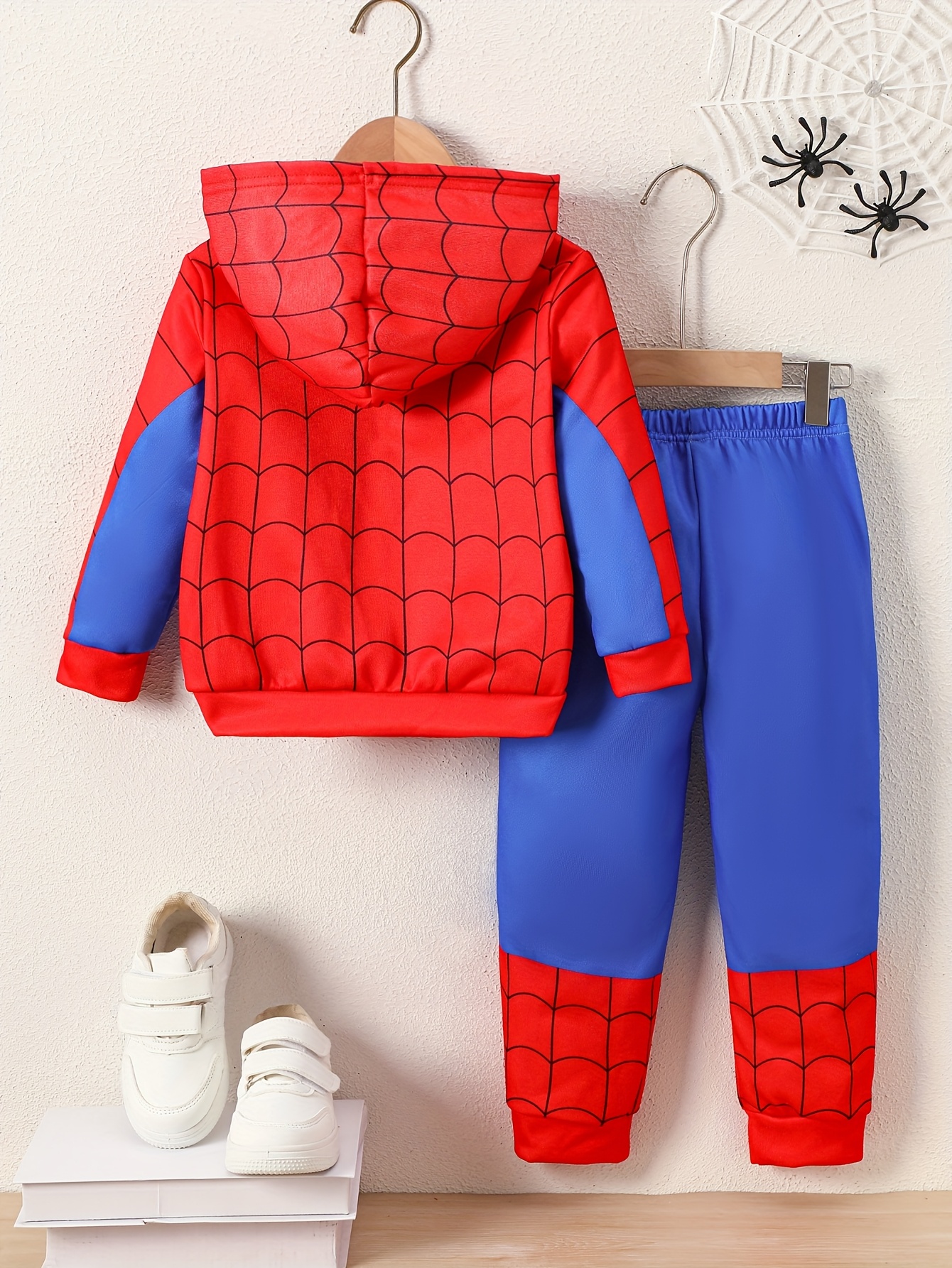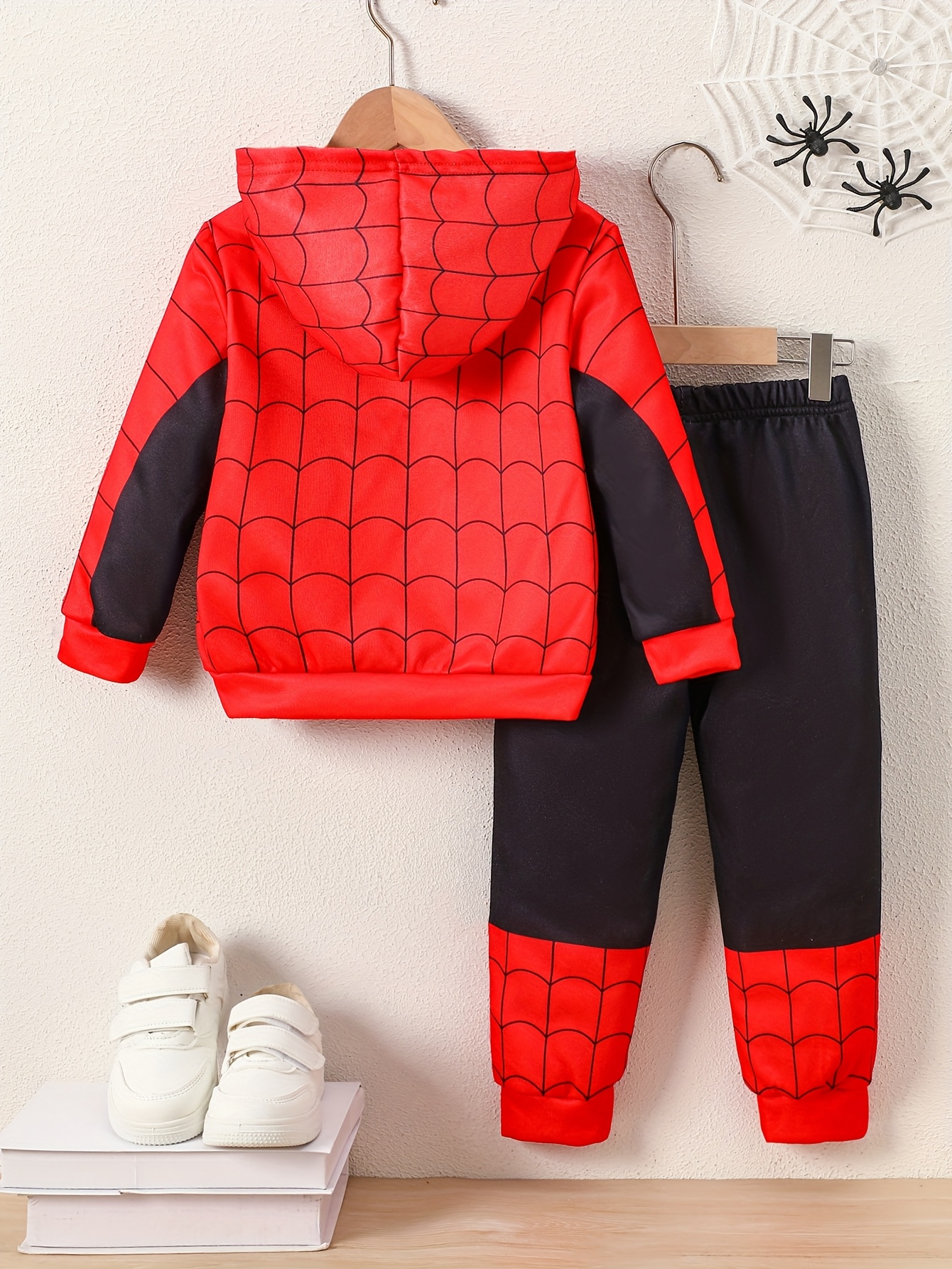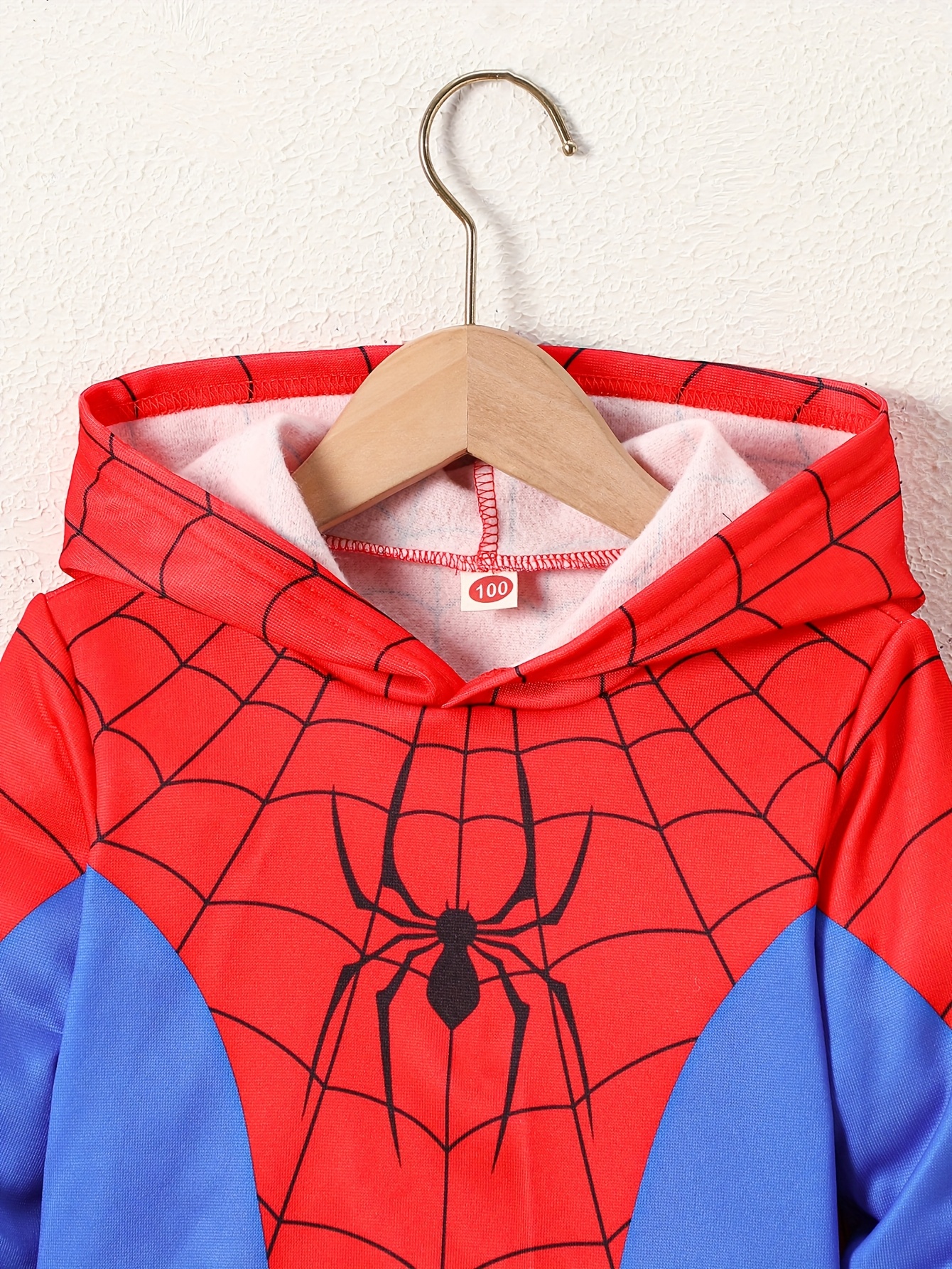Boys’ autumn winter spider print hooded sweatshirt+contrasting pants two-piece set/outdoor party wear autumn winter/perfect gift children/comfortable fabric