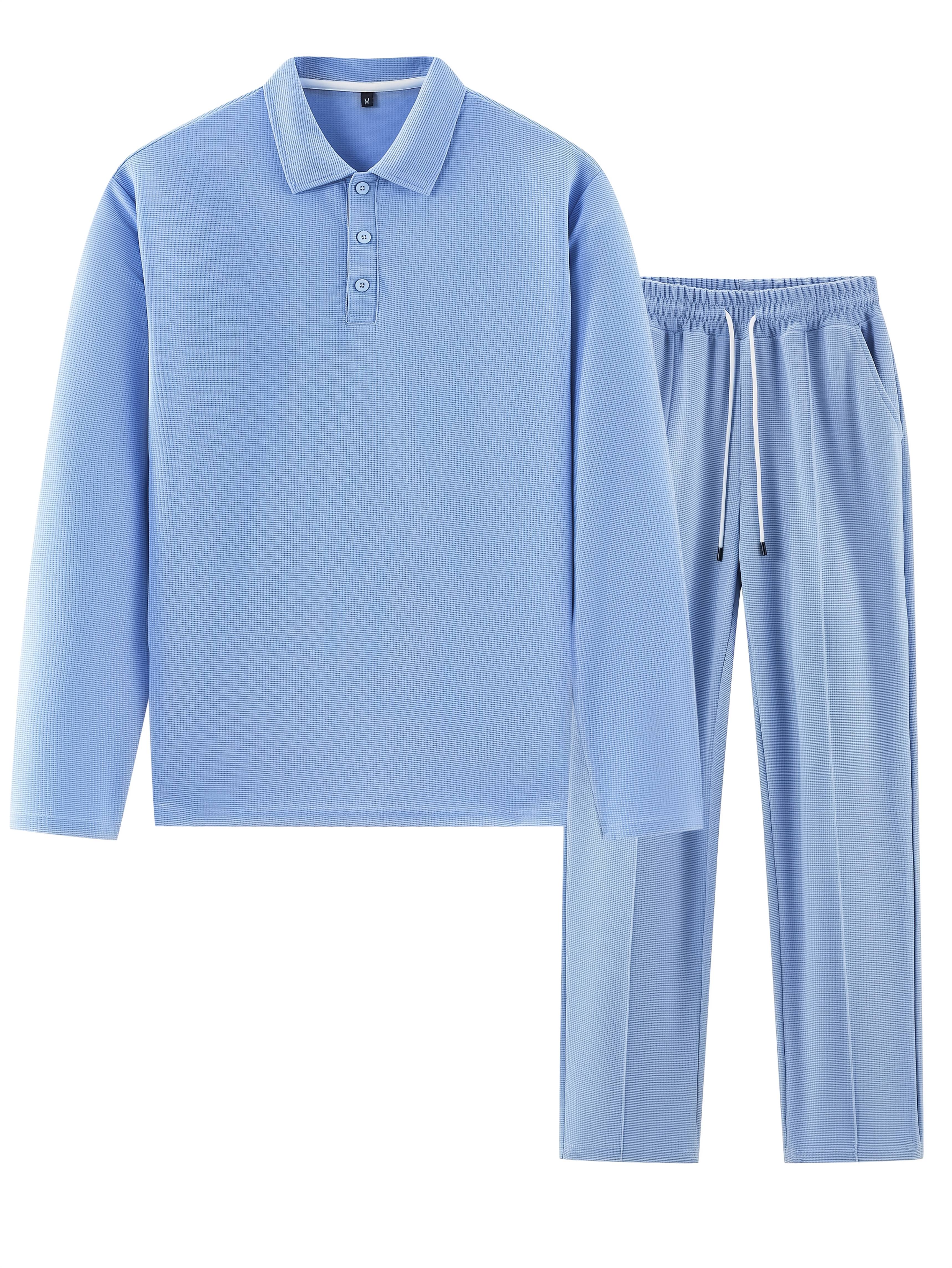 [Comfortable Men’s Set] 2pcs Men’s Long-Sleeve Shirt and Drawstring Pants Set – Clean, Comfortable, Breathable