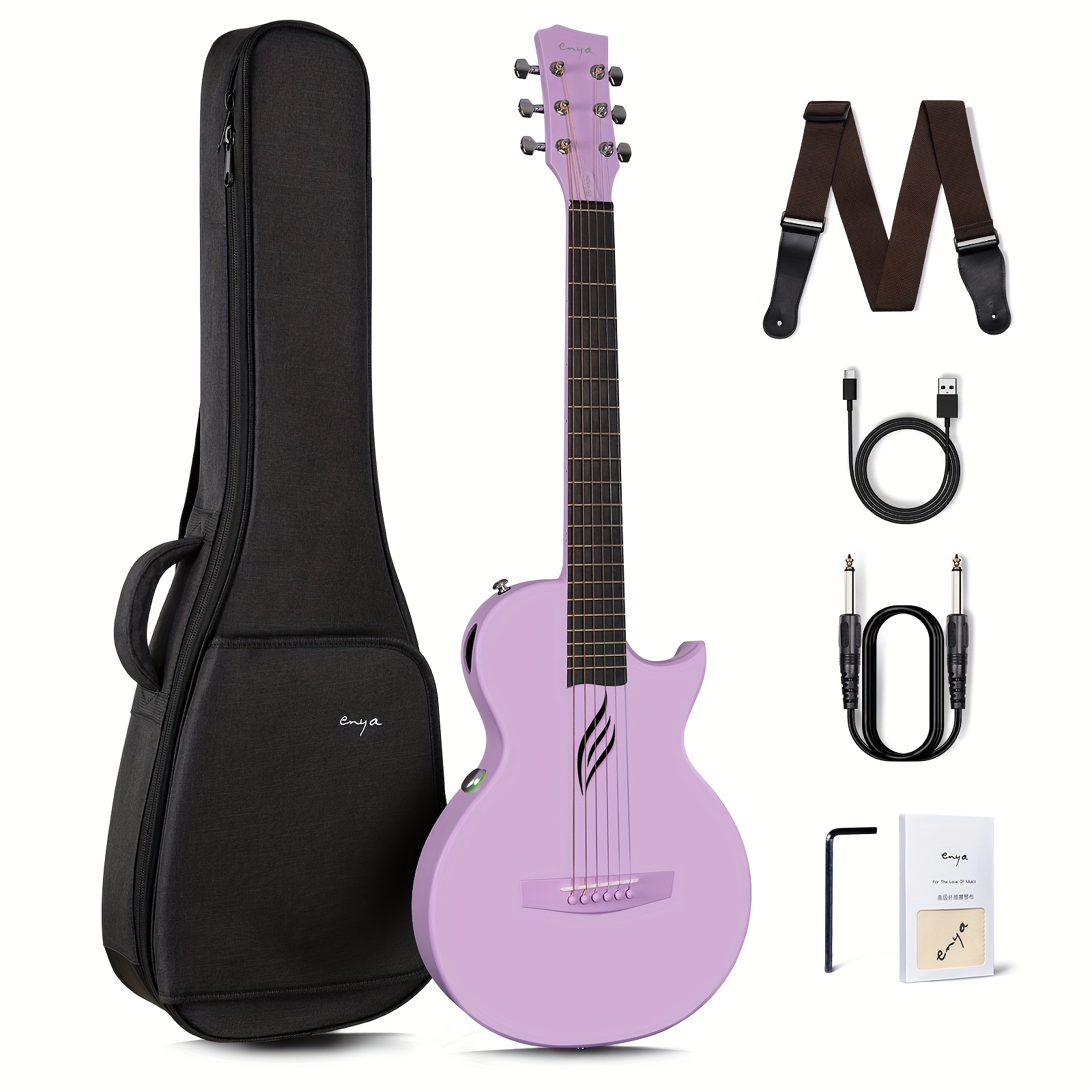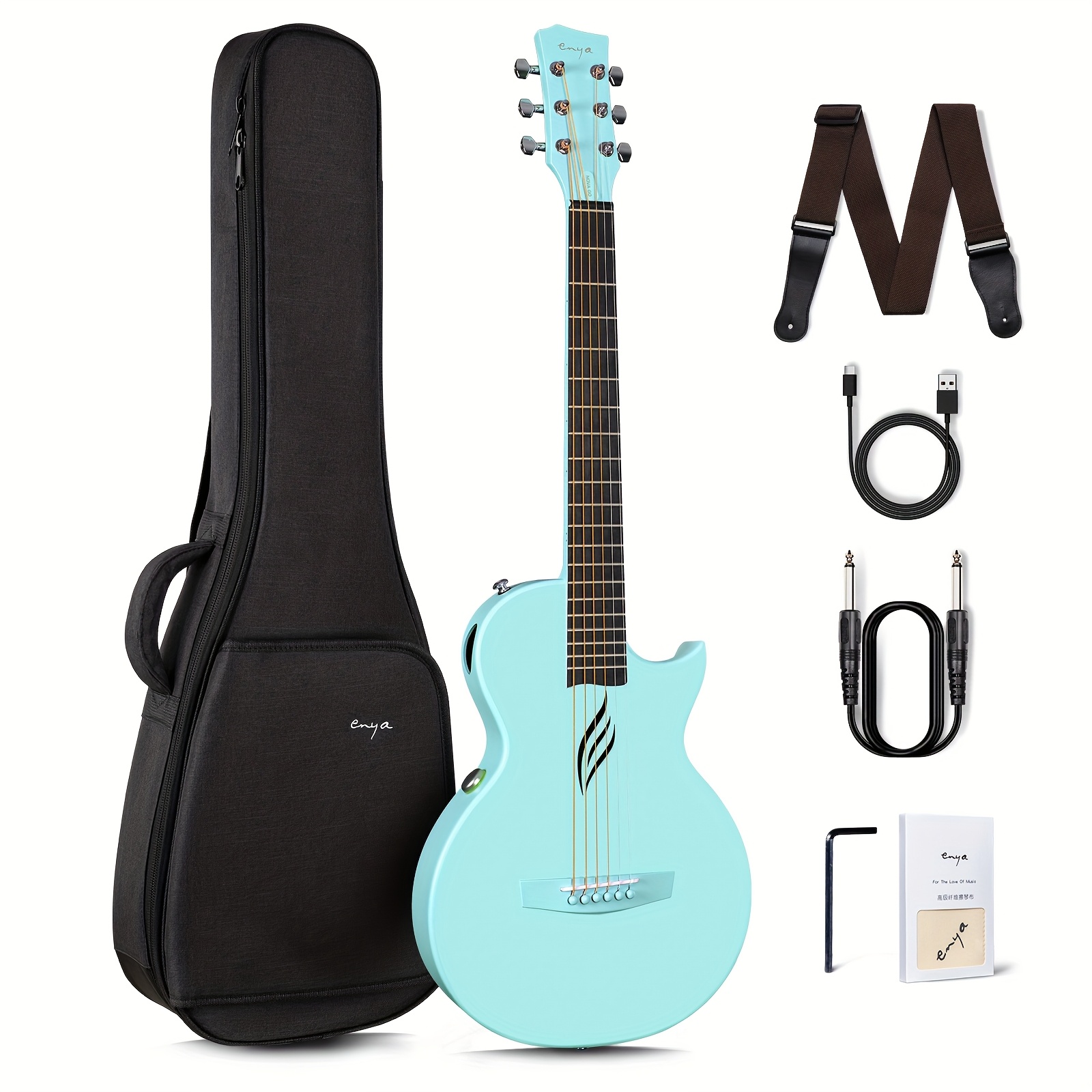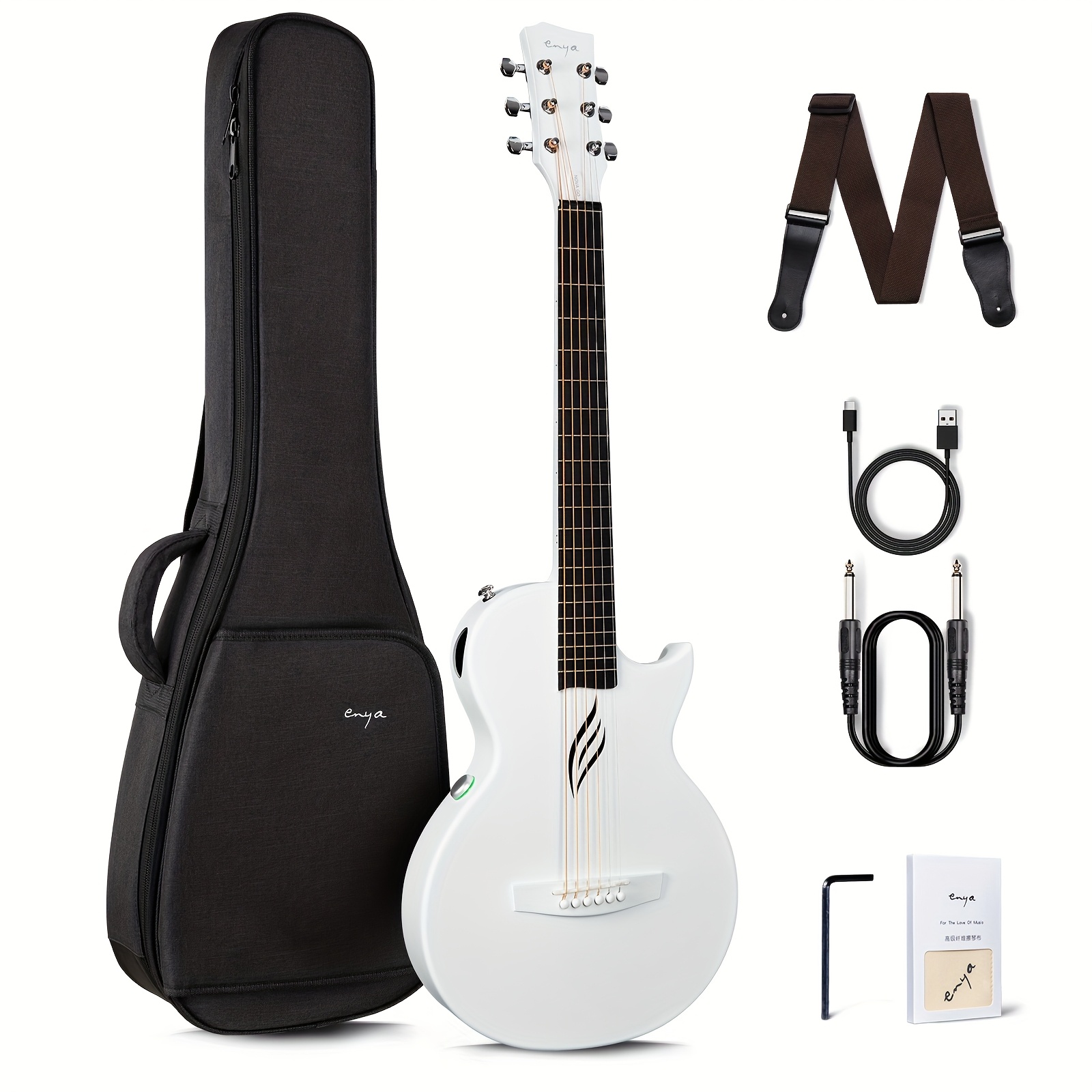 Enya NOVA Go SP1 Carbon Fiber Acoustic Electric Guitar with Smart Acousticplus 35 Inch Travel Acustica Guitarra Starter Bundle Kit of Gig Bag, Strap, Strings, Charging Cable, Instrument Cable, for Valentine’S Day, Christmas Gifts(Refurbished)