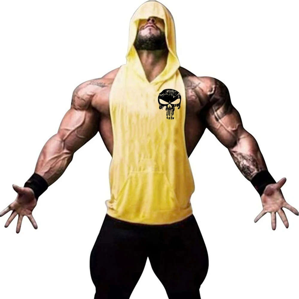 Fashionable and trendy men’s summer personalized printed gym exercise and leisure comfortable and refreshing hooded vest
