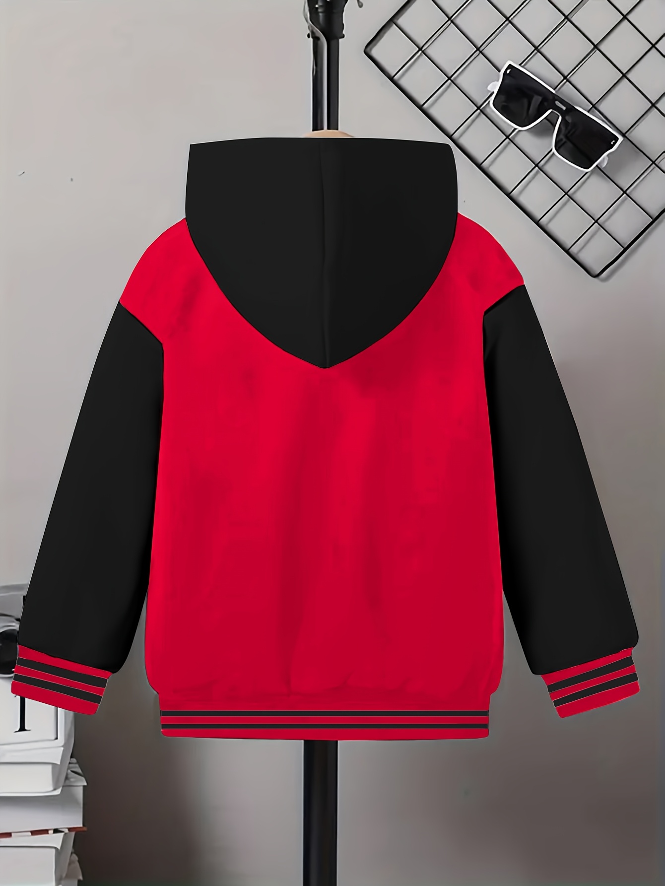Funny Face Print Hooded Jacket – & Contrast Zipper Coat with Piping, Loose Fit Casual Winter Outerwear for School, Playdates, Parties – Machine Washable Cold Weather Clothing