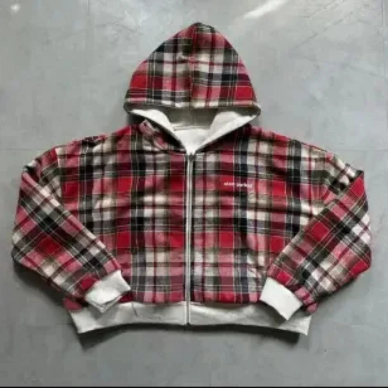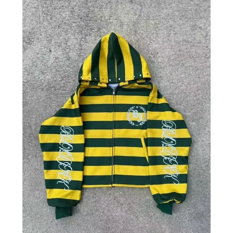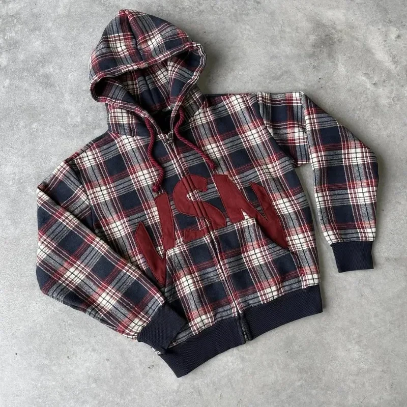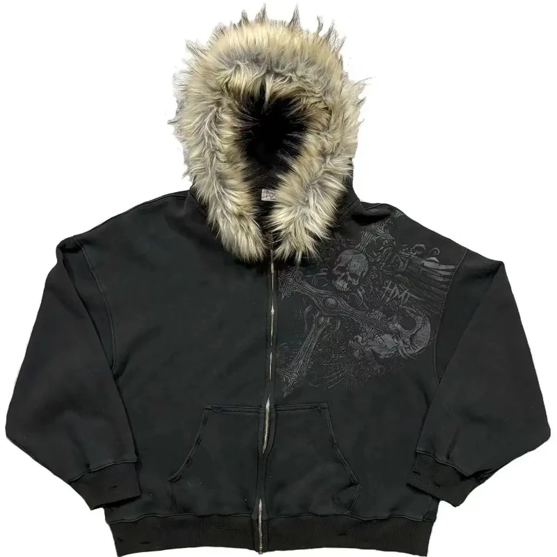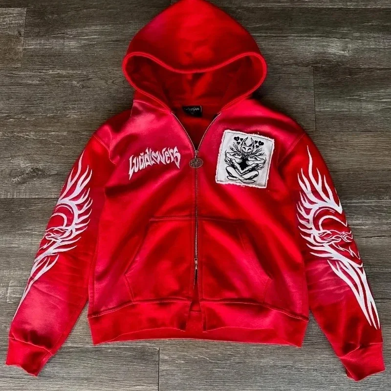 America Retro Street Graphic Printed Hoodie Men Clothing Trendy Y2k Long Sleeve Zip Up Hooded Sweatshirt Overszied Loose Jacket
