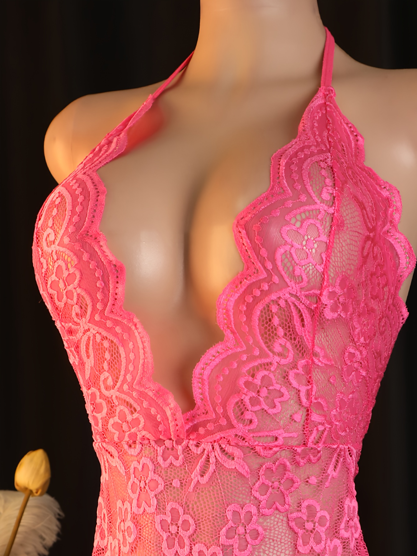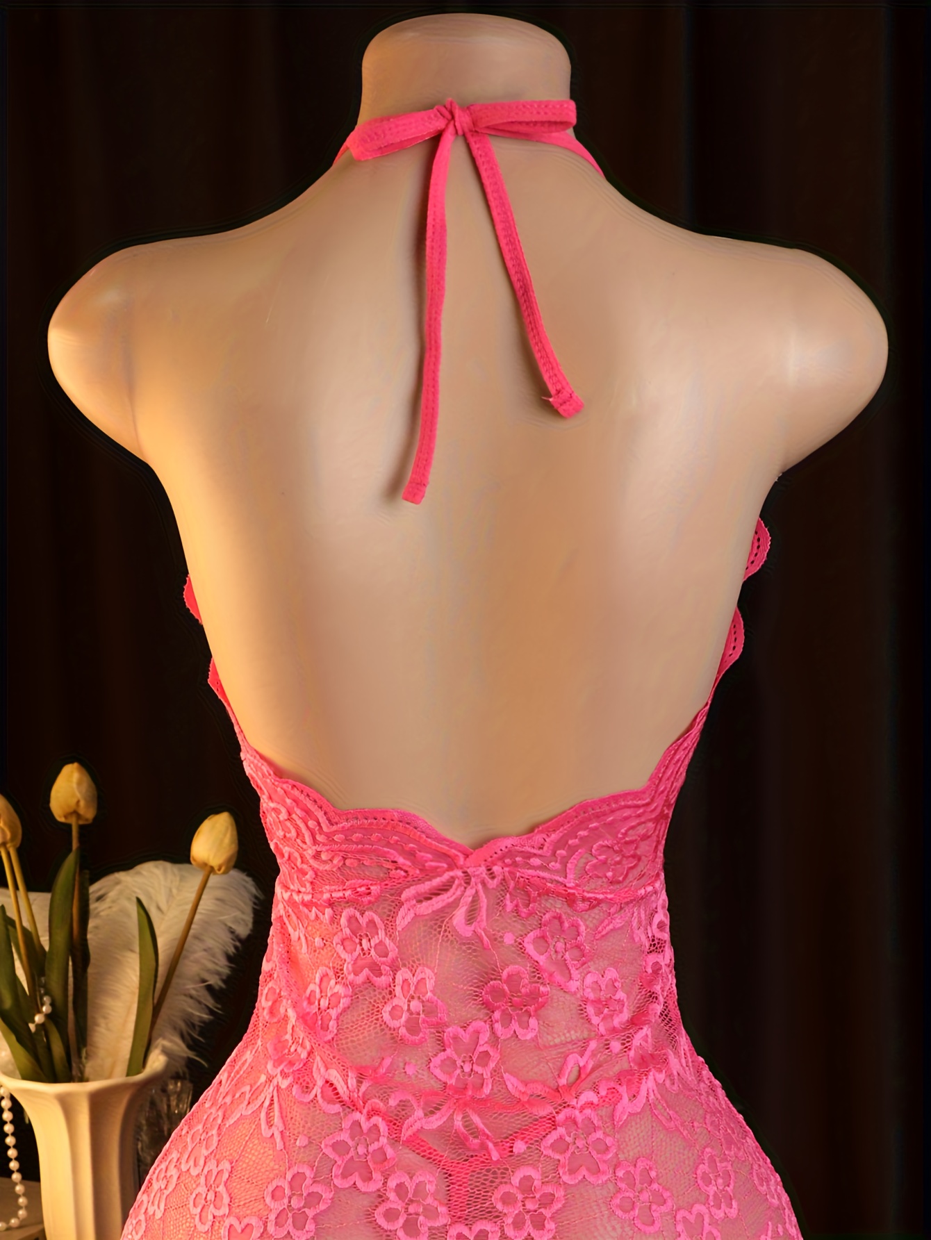 Ladies Sexy Transparent Mesh Suspender Skirt & Lace Pajamas – Backless & Leg Opening Underwear Pajamas, Hand Wash Available, Exotic Boudoir Dress, for Lotus Leaf Neckline & Thigh High Split Ladies Secret Underwear