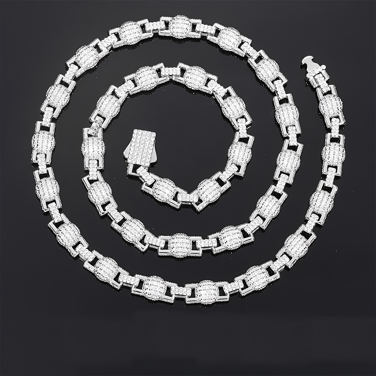 Microset Moissanite Accents: Thousands of tiny Moissanite stones are hand-set into the links to create a seamless “iced-out” surface that flashes with rainbow brilliance.