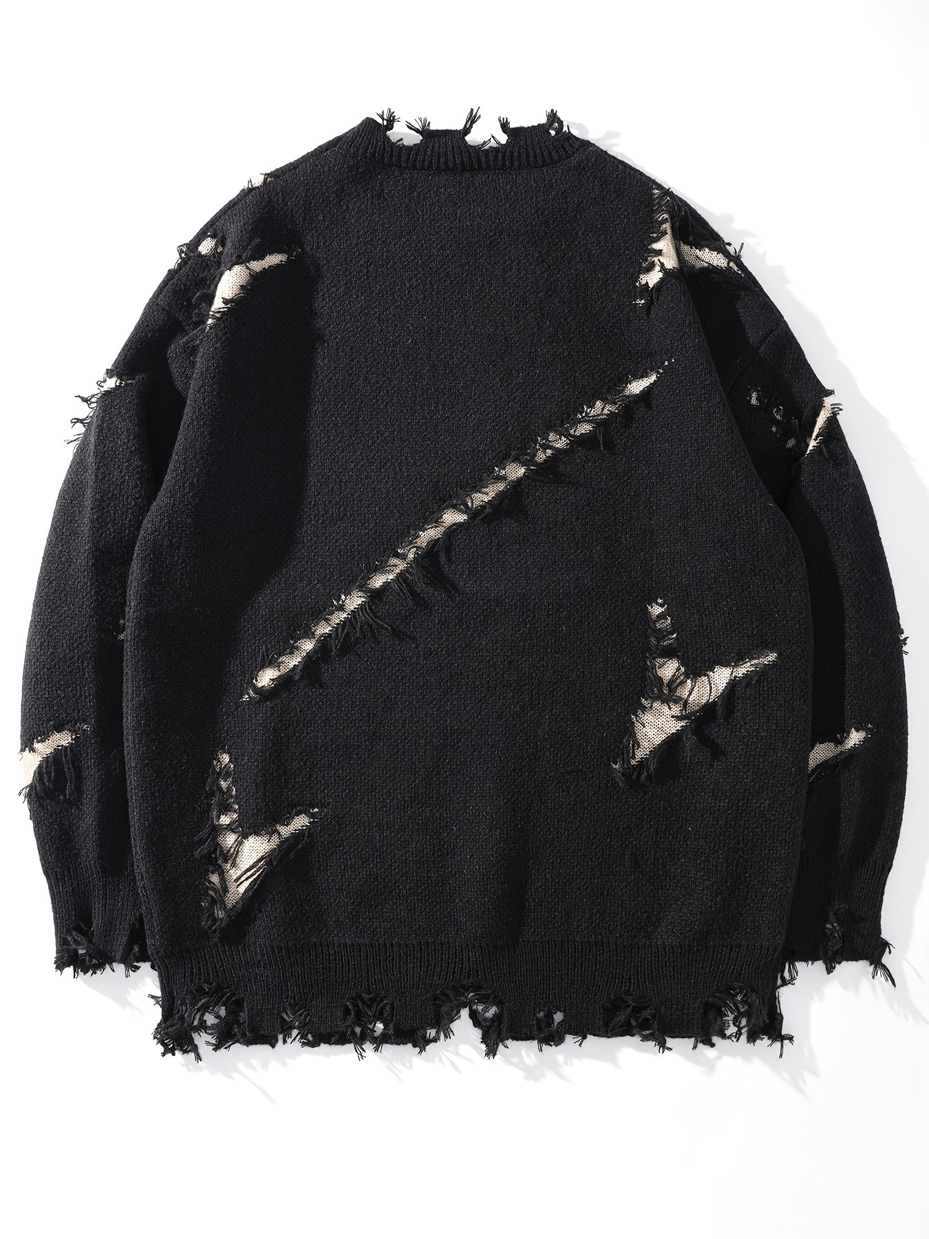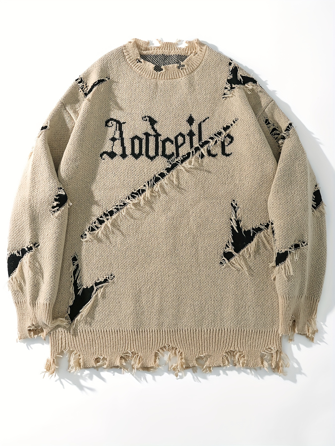 Redefine your winter knitwear with our Relaxed Fit Distressed Sweater. This isn’t your average pullover; it features a bold drop-shoulder silhouette for that effortless, slouchy look favored in modern streetwear. The design is elevated by intricate letter embroidery contrasted against intentional ripped and frayed details, giving it a rugged, vintage-inspired edge. Crafted from a premium fabric with medium elasticity, it offers enough stretch to move with you while maintaining its structured, oversized shape. Whether you’re layering it for a late-autumn outing or making it your primary winter statement piece, this sweater provides a tactile, multi-dimensional look that stands out.