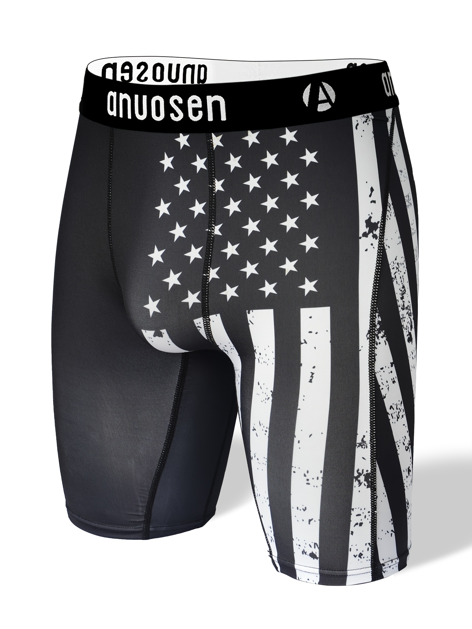 Men’s Long Sports Briefs with Positioning Print, Anti-Chafing, Quick-Dry, Breathable, Elastic, Comfortable, Casual Running Boxer Shorts, Men’s Athletic Underwear, Gym Shorts