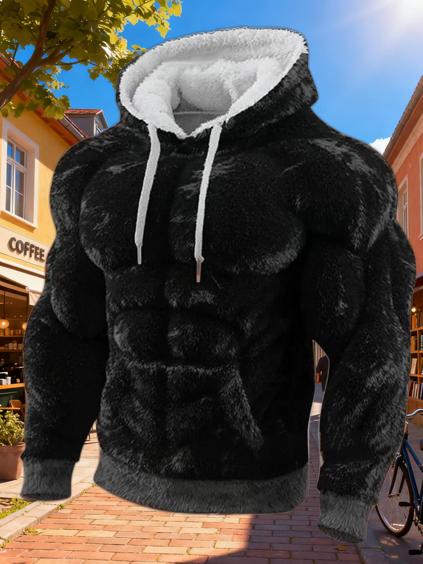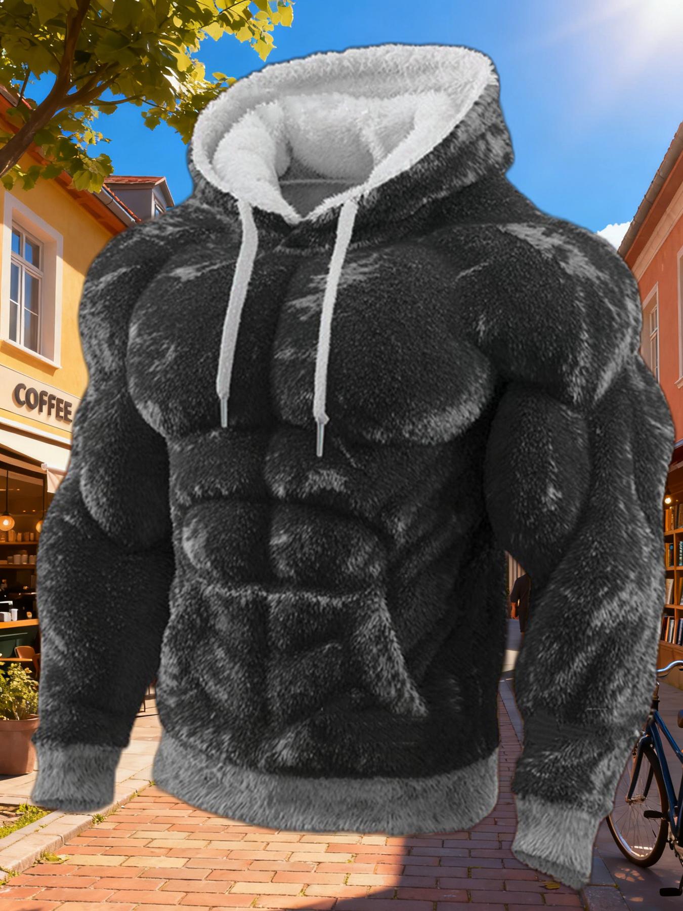 New Men’s Streetwear Flannel Hooded Sweatshirt for Fall/Winter Star Apparel, All-Season Wear, Christmas Day Gift for Boyfriend/Husband, Regular Fit Long Sleeve Sweatshirt, Daily & Casual Wear
