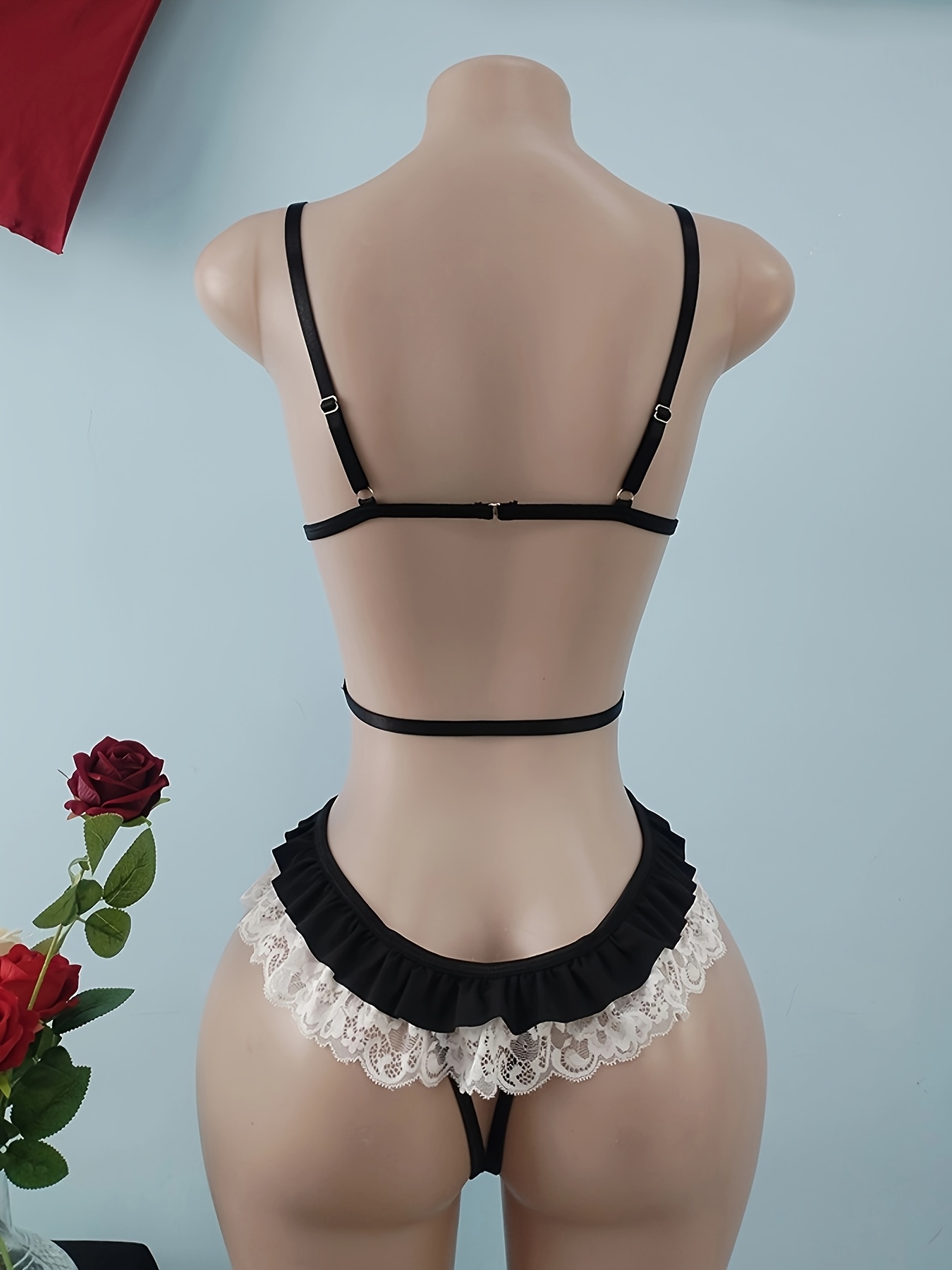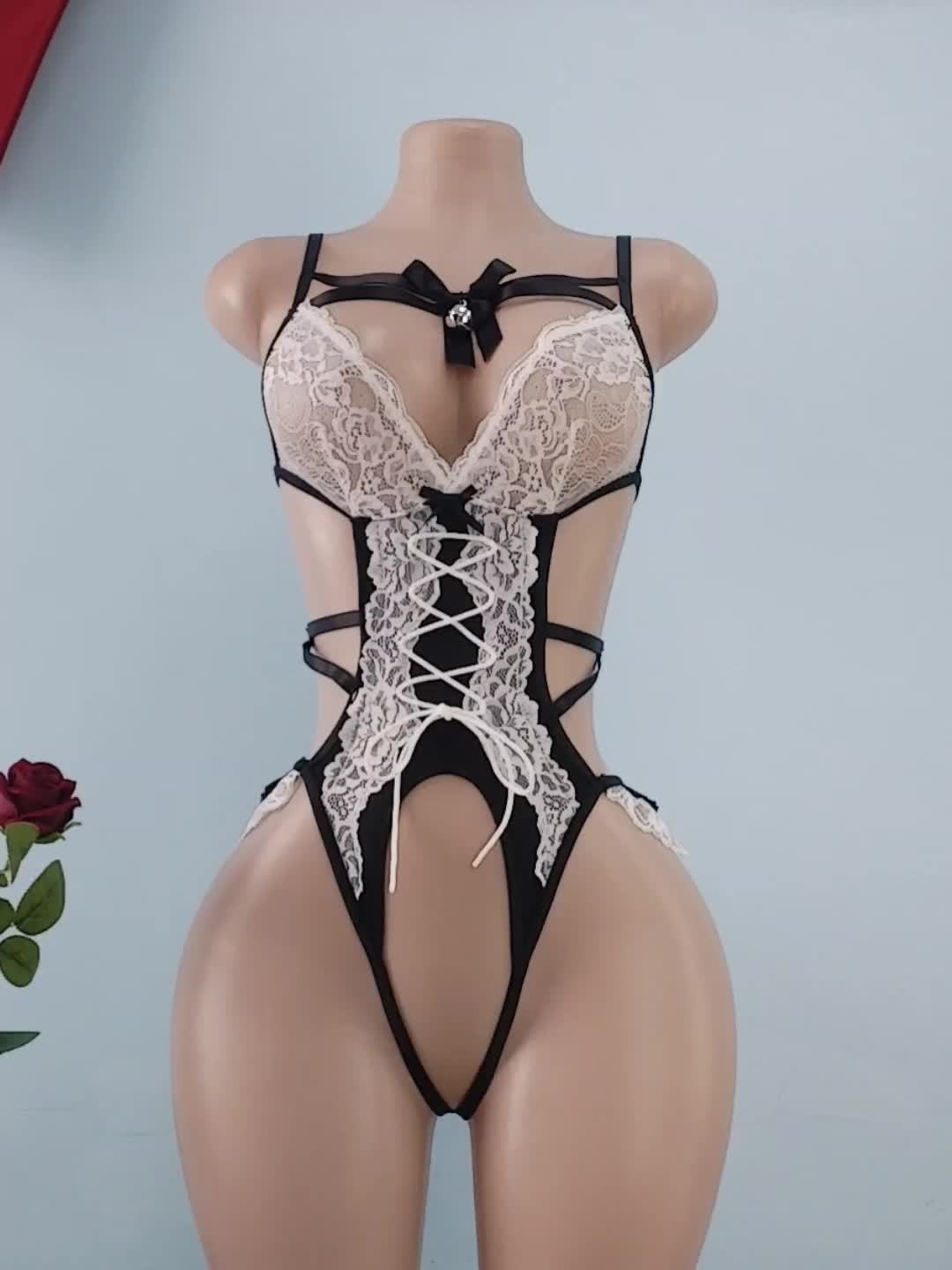 The “Feline Charm” Bodysuit is a seductive one-piece role-play outfit featuring an integrated bell collar and an open-crotch lace design. Crafted from high-stretch floral mesh with a provocative backless silhouette, this “Bell Cat” ensemble offers a playful yet enticing look—perfect for themed romantic nights, cosplay, and adding a mischievous, feline-inspired edge to your intimate collection.