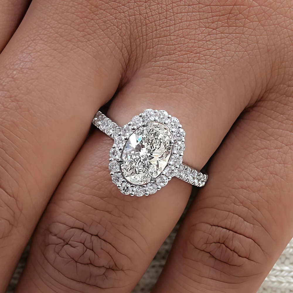 Oval Cut Moissanite Halo Rings Certified 1/2carat D Color Lab Diamond Engagement Ring 925 Sterling Silver Wedding Band For Women