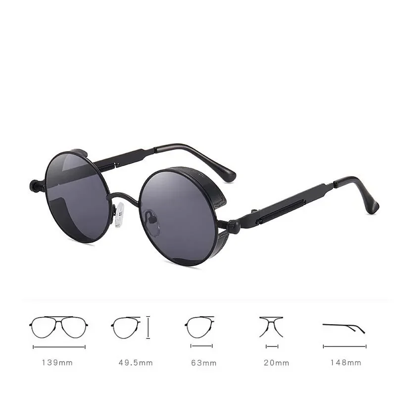 Personalized Red Sunglasses Men Round Punk Alloy Metal Sunglasses Uv400 Goggles Gothic Style Shades Sunglases