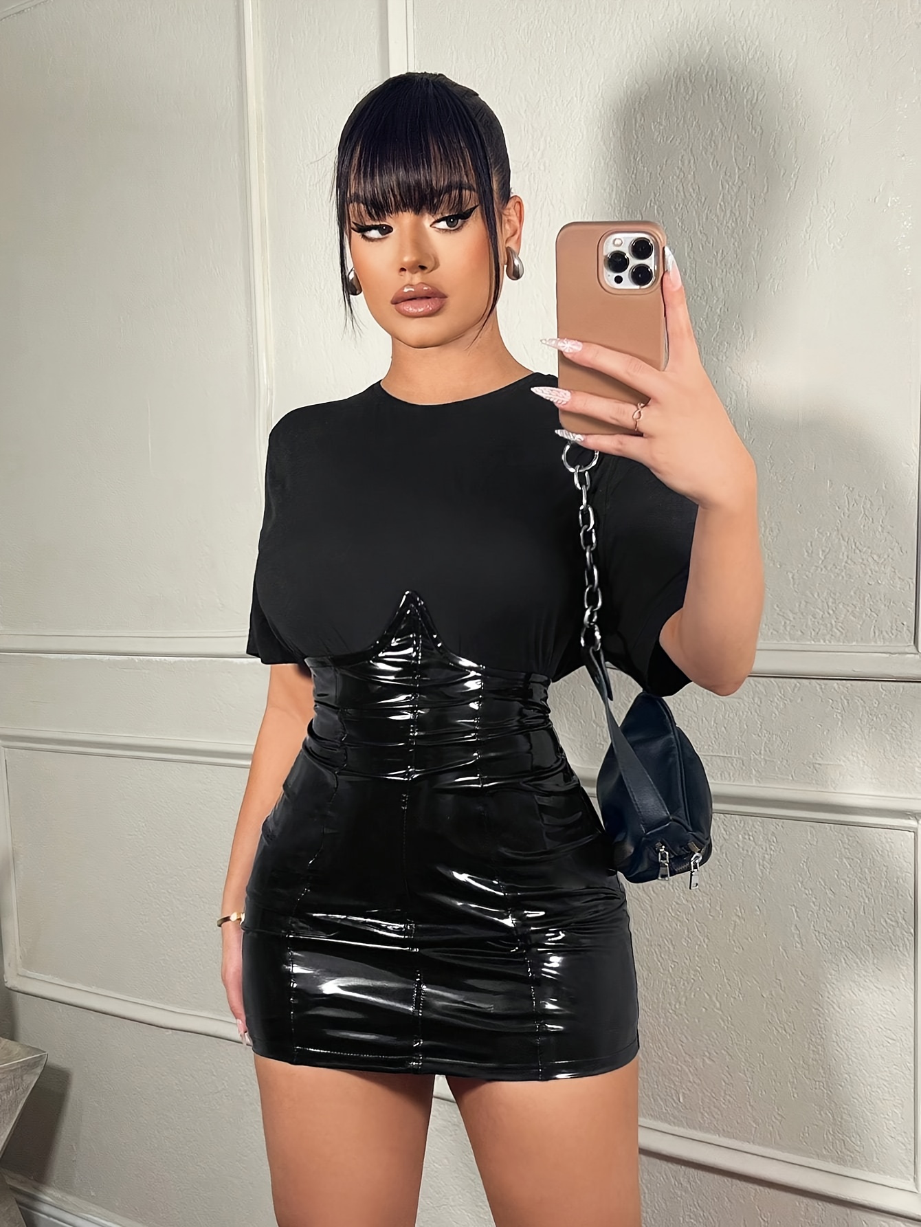 Plus Size, and Figure-Flattering! Black Glossy Patent Leather Bodycon Skirt, Trendy and Versatile Mini Skirt