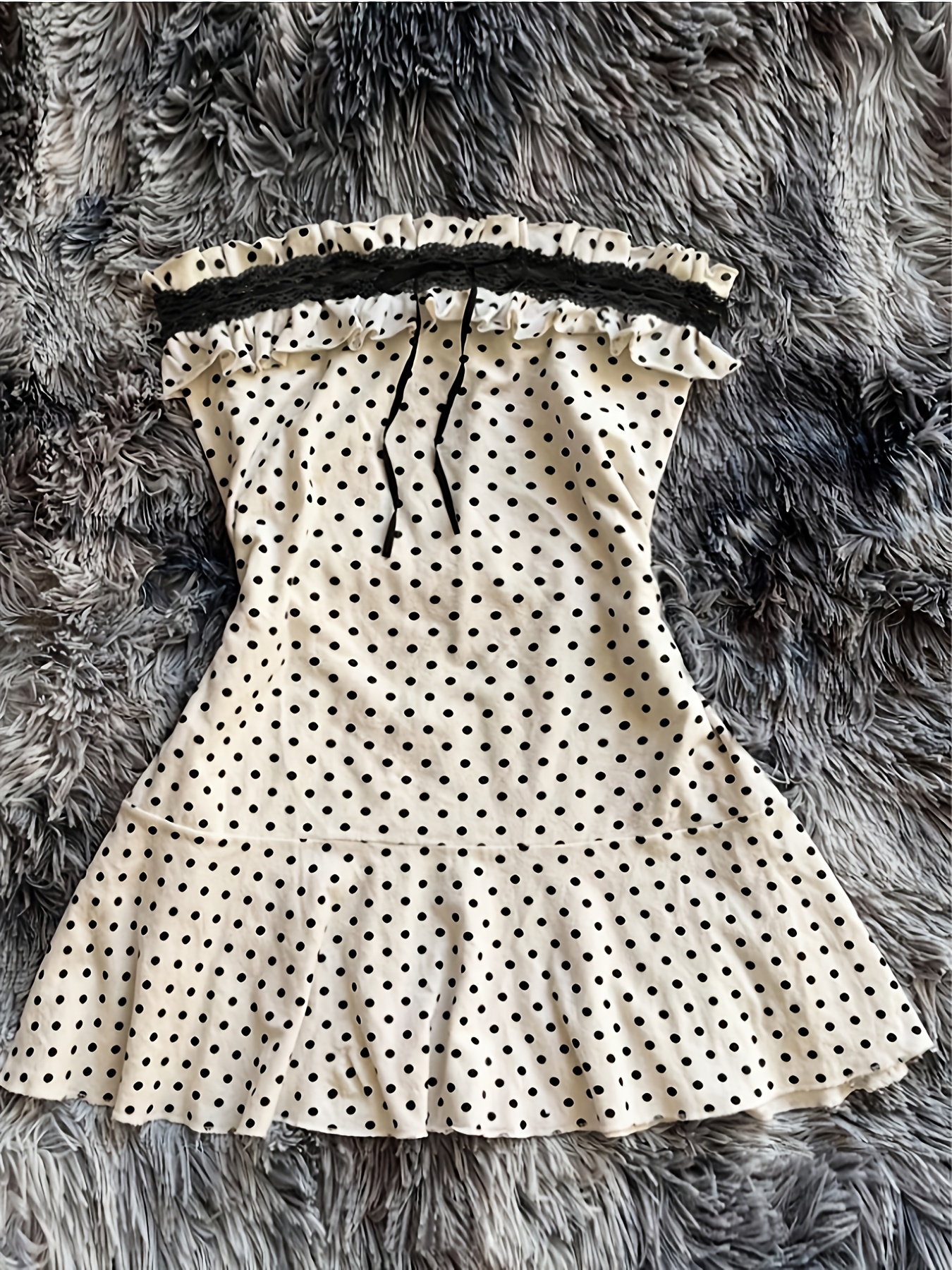 Plus Size – Elegant Polka Dot Print Bandeau Dress | Midi Length, Sleeveless, Slight Stretch Fabric, Ribbon Details, Summer Season