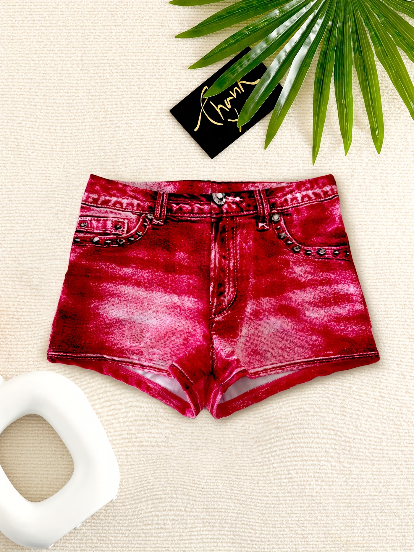 [Printed Pants – Not Denim Fabric] Easter Single-Pack Imitation Denim Print High-Waisted Women’s Swim Briefs P0234