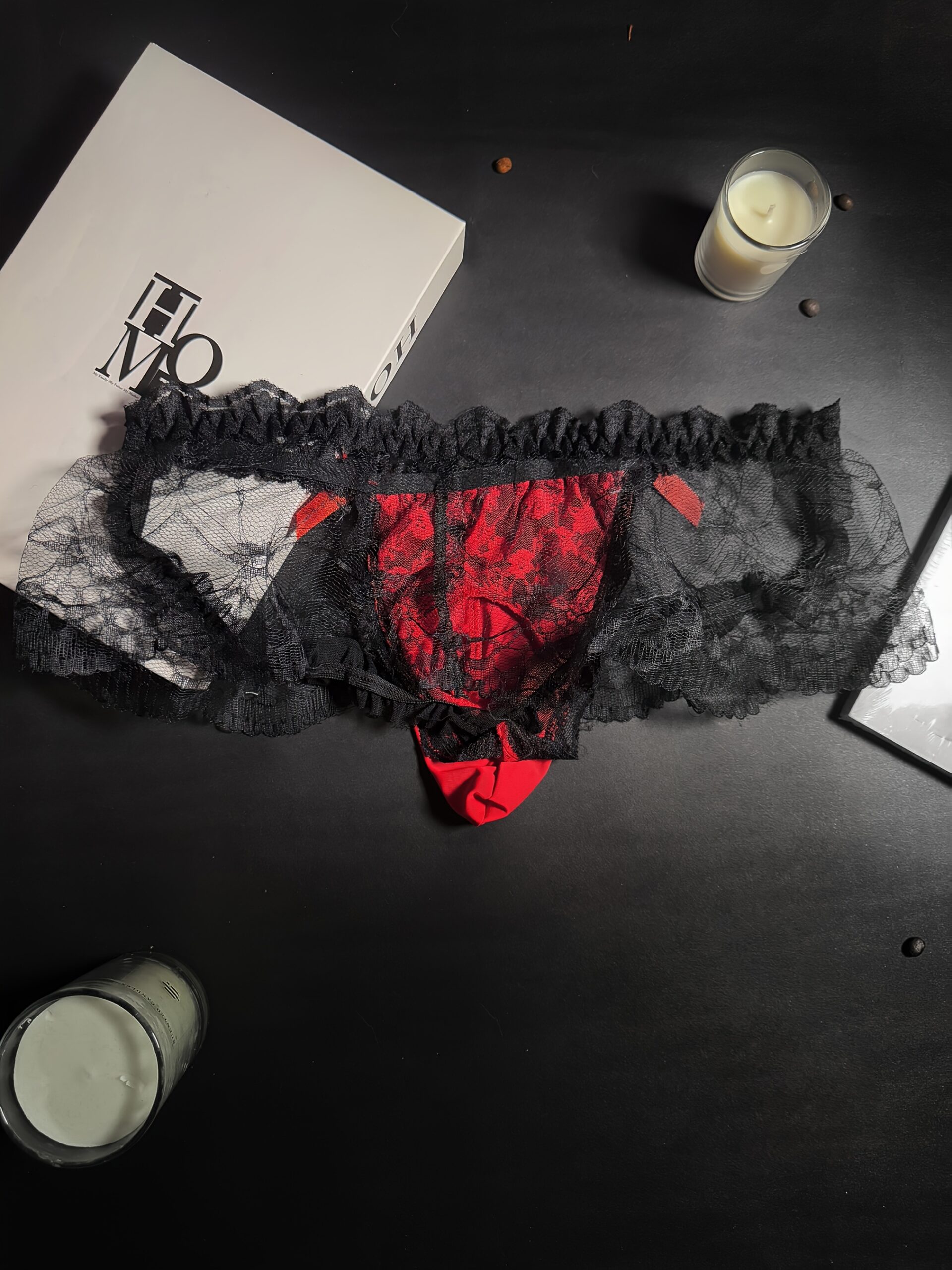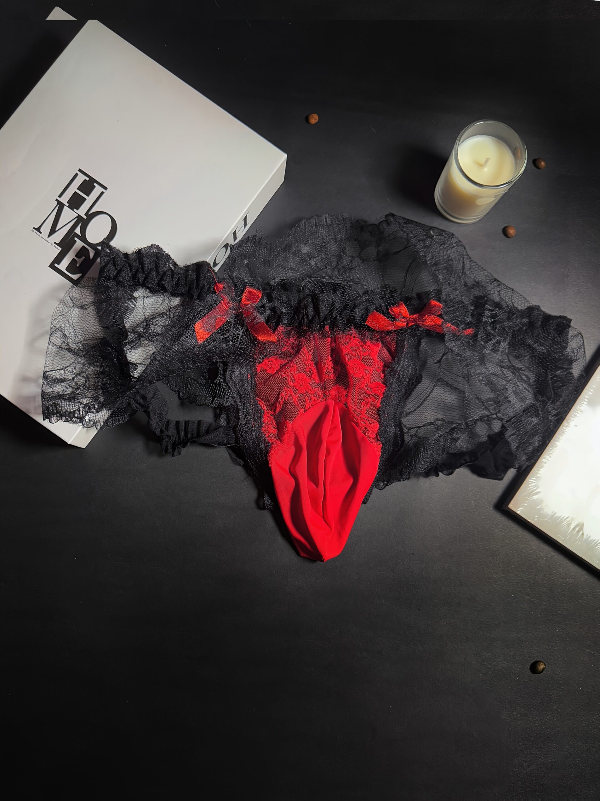[Sexy Lace Underwear] Lace Men’s Sexy Underwear | Mesh Design, Red Bow and Pouch Detail for Visual Stimulation and Comfort | One Size Fits S-L, Perfect for Special Occasions or Intimate Moments