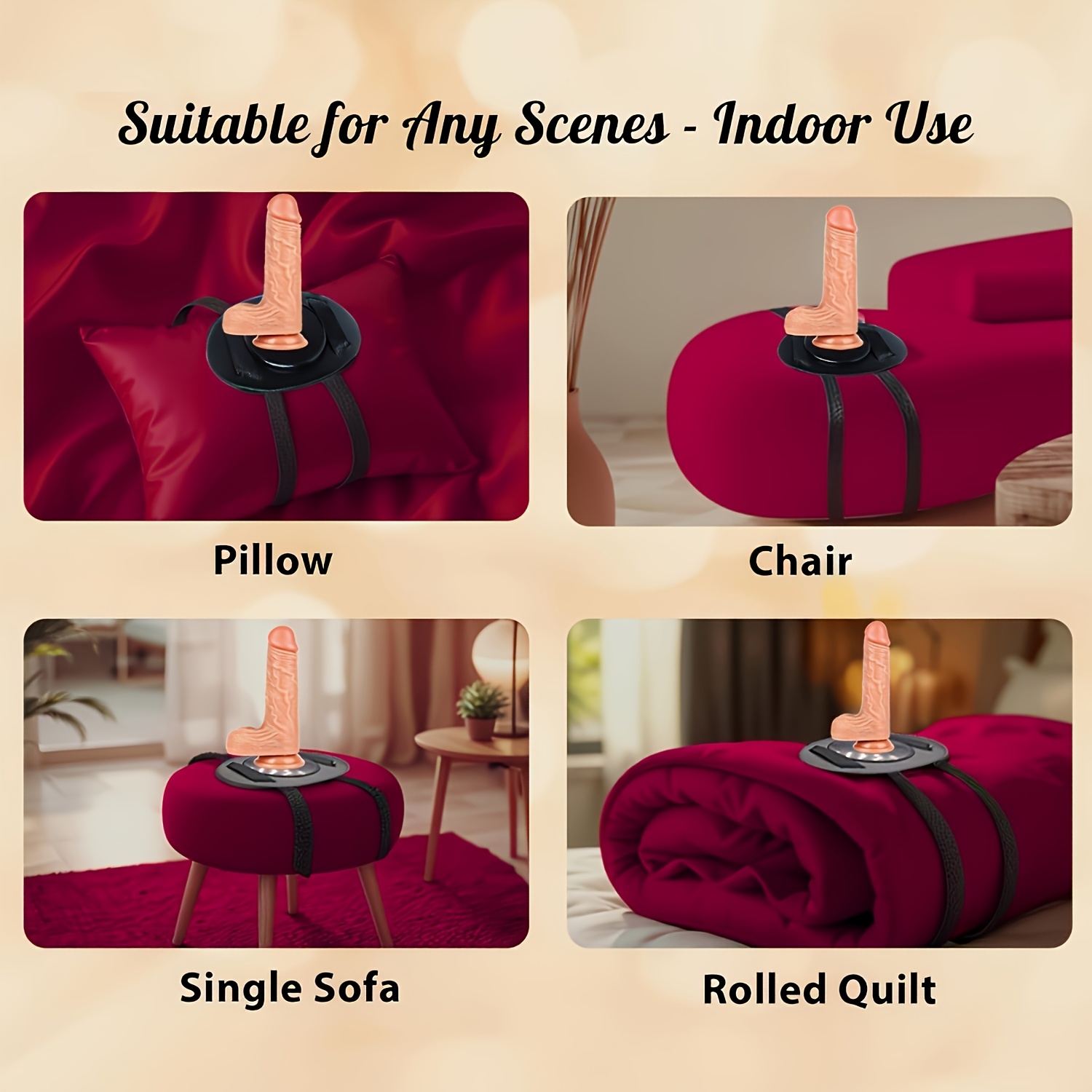 Suction Cup Dildo Holder, Fantasy Style Strap-On Seat Machine with Tied Pillow Towel Stool Furniture Thigh Pad for Small and Penises – BDSM Bondage Accessory Adult Toy (Dong Not Included), Solo Pleasure Device, Playful Restraint Gear, Secure Fastening Straps, Soft Fabric Cover, Kink Community