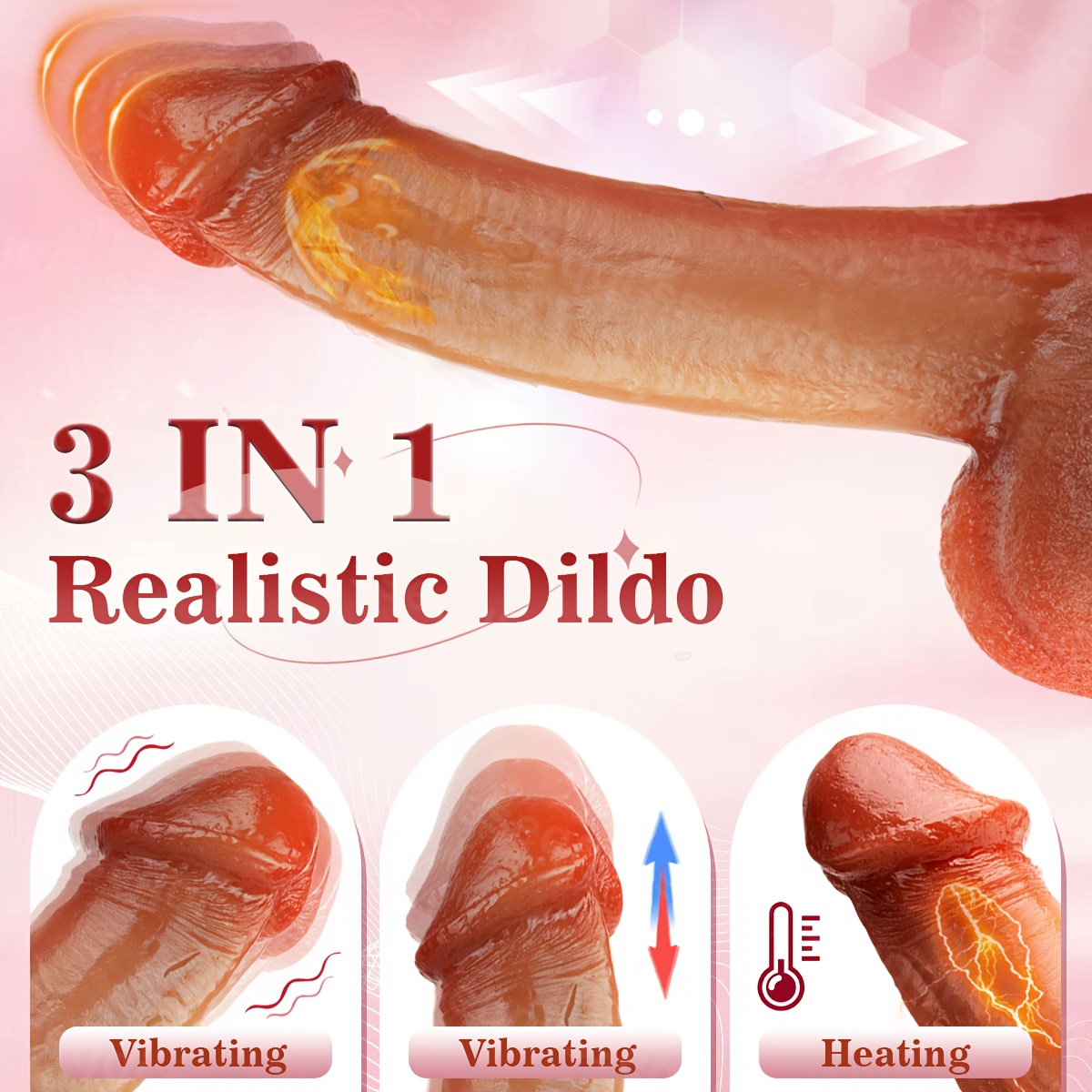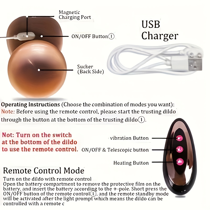 Thrust Dildo Vibrator Sex Toy, Real G-Spot Silicone Suction Cup Rotating Dildo with Heating Function and 10 Modes, Remote Control, Used for Anal and Vaginal Stimulation, Suitable for Female Couples, 1 pc