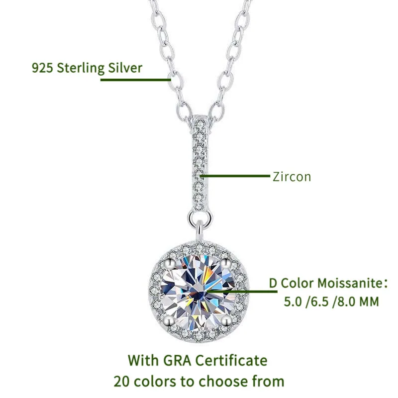 TY D VVS1 Moissanite Pandent Necklace GRA Certified 0.5-2ct Lab Diamond s925 Sterling Silver Dainty Necklaces for Women